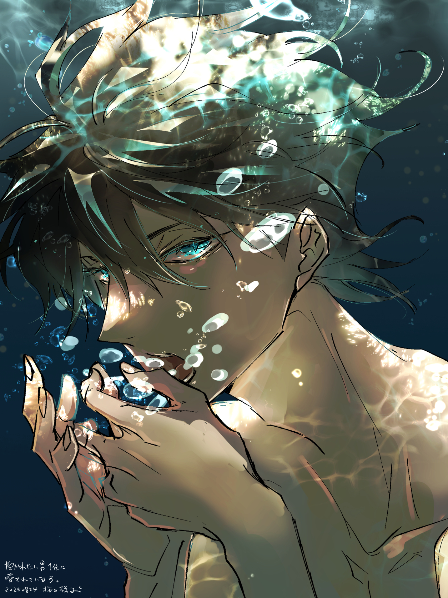 : 櫻日老師把水中的光影和水泡都上色處理得很美,很厲害!