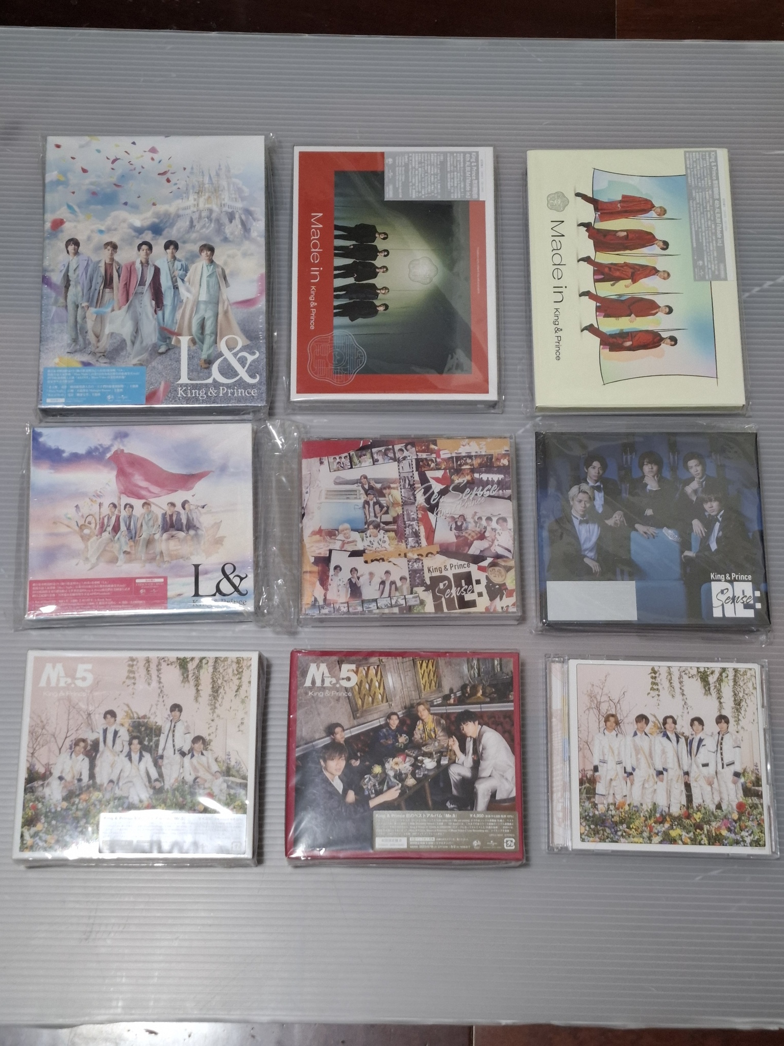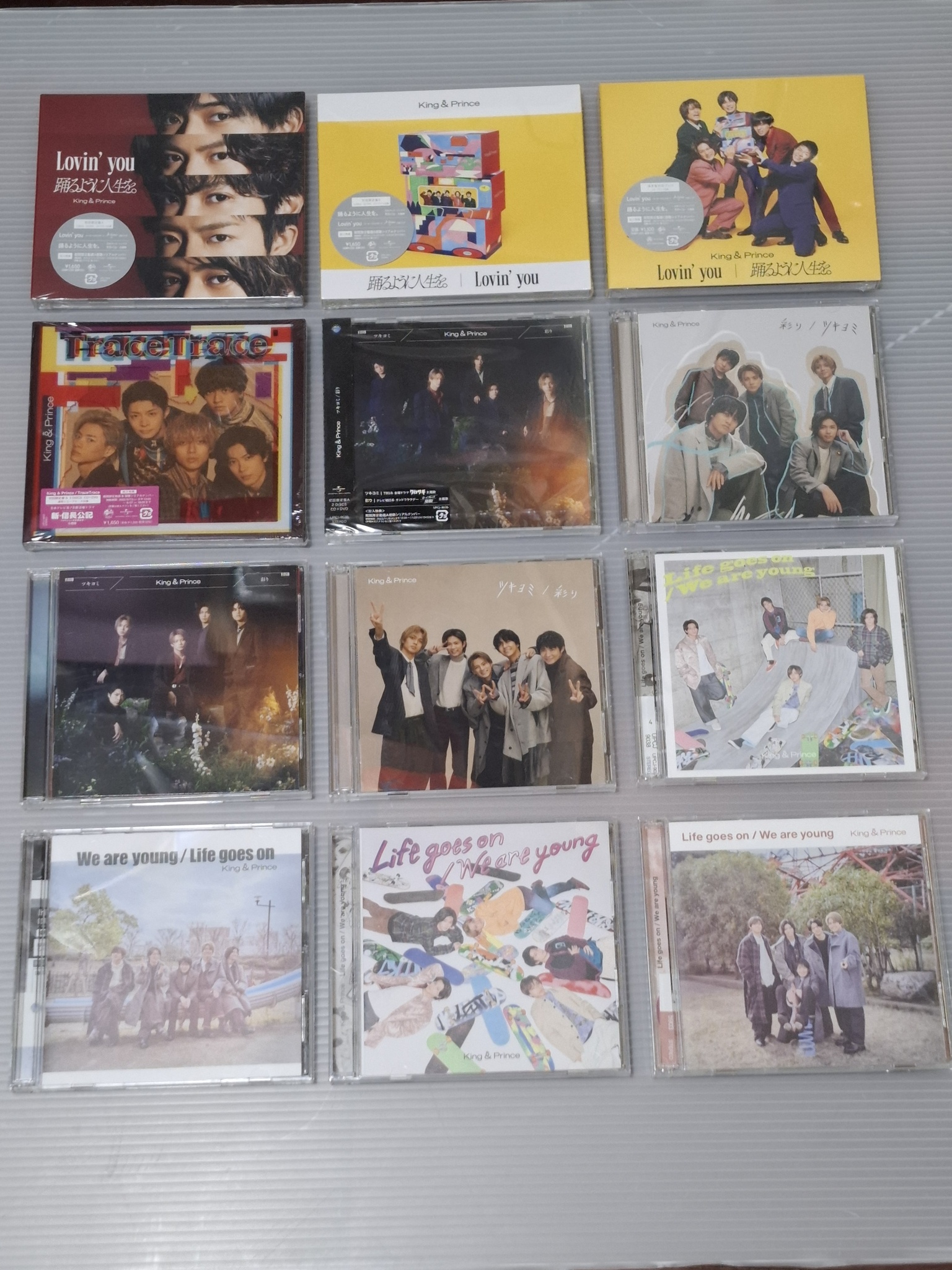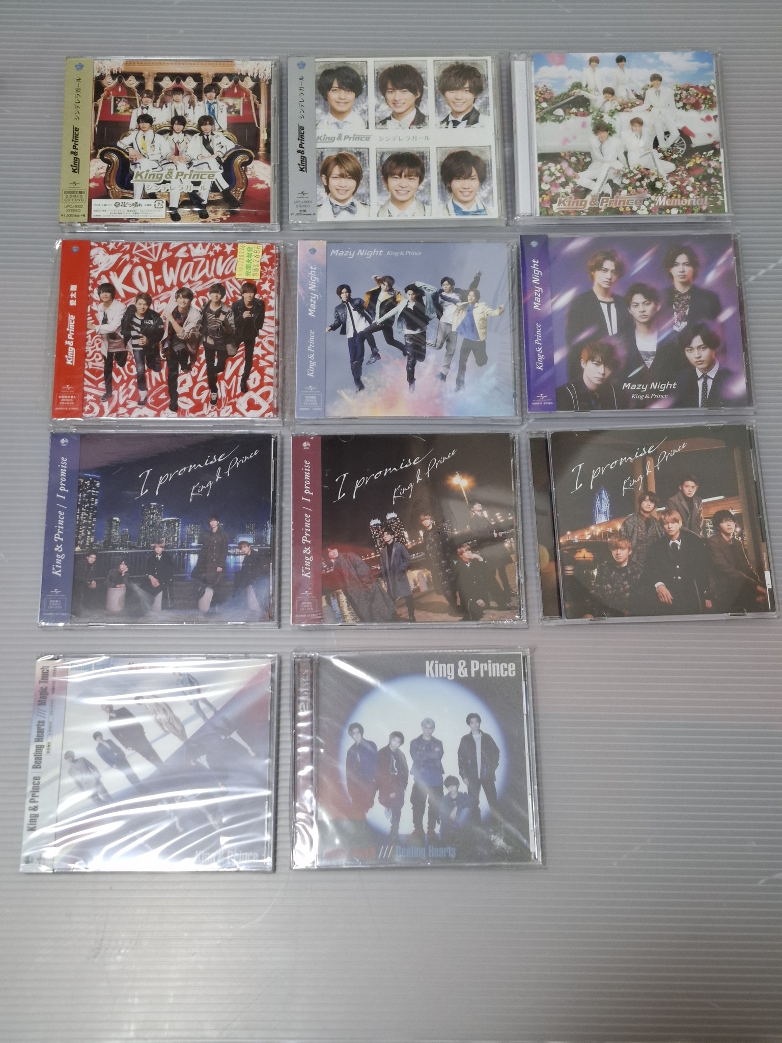 兩張照片裡都有全新未拆、拆後但光碟本身沒有撥放、拆後有撥放光碟的單曲。