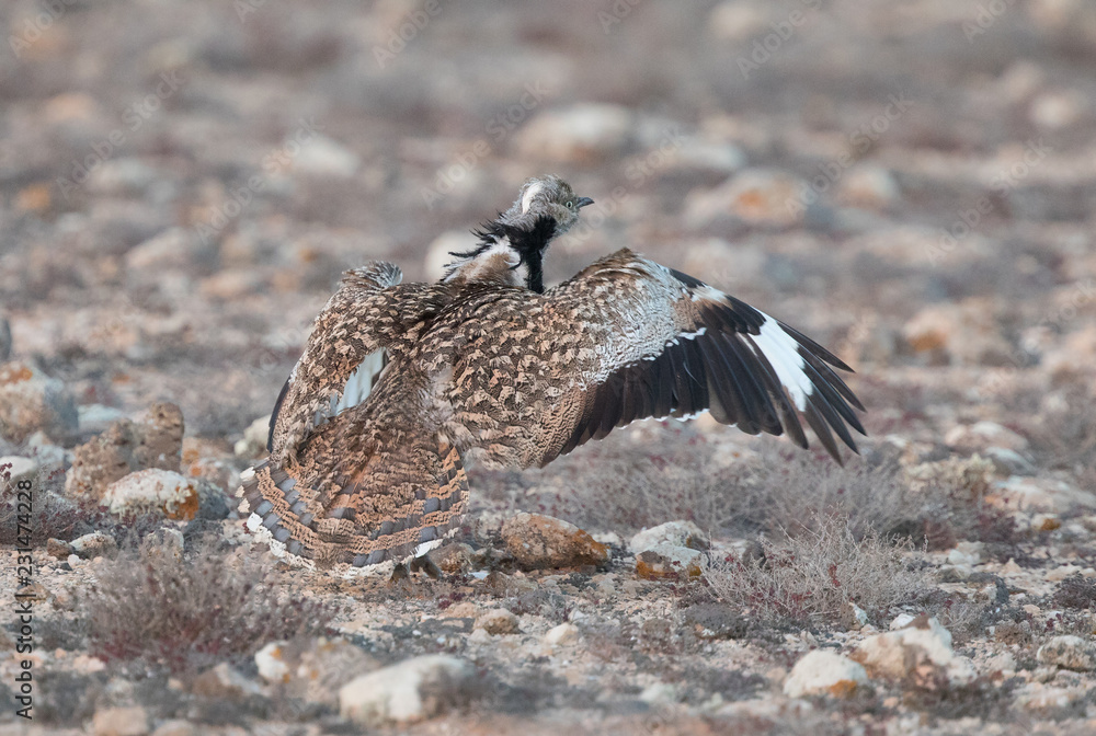 Displaying Houbara Bustard, Birds of Lanzarote