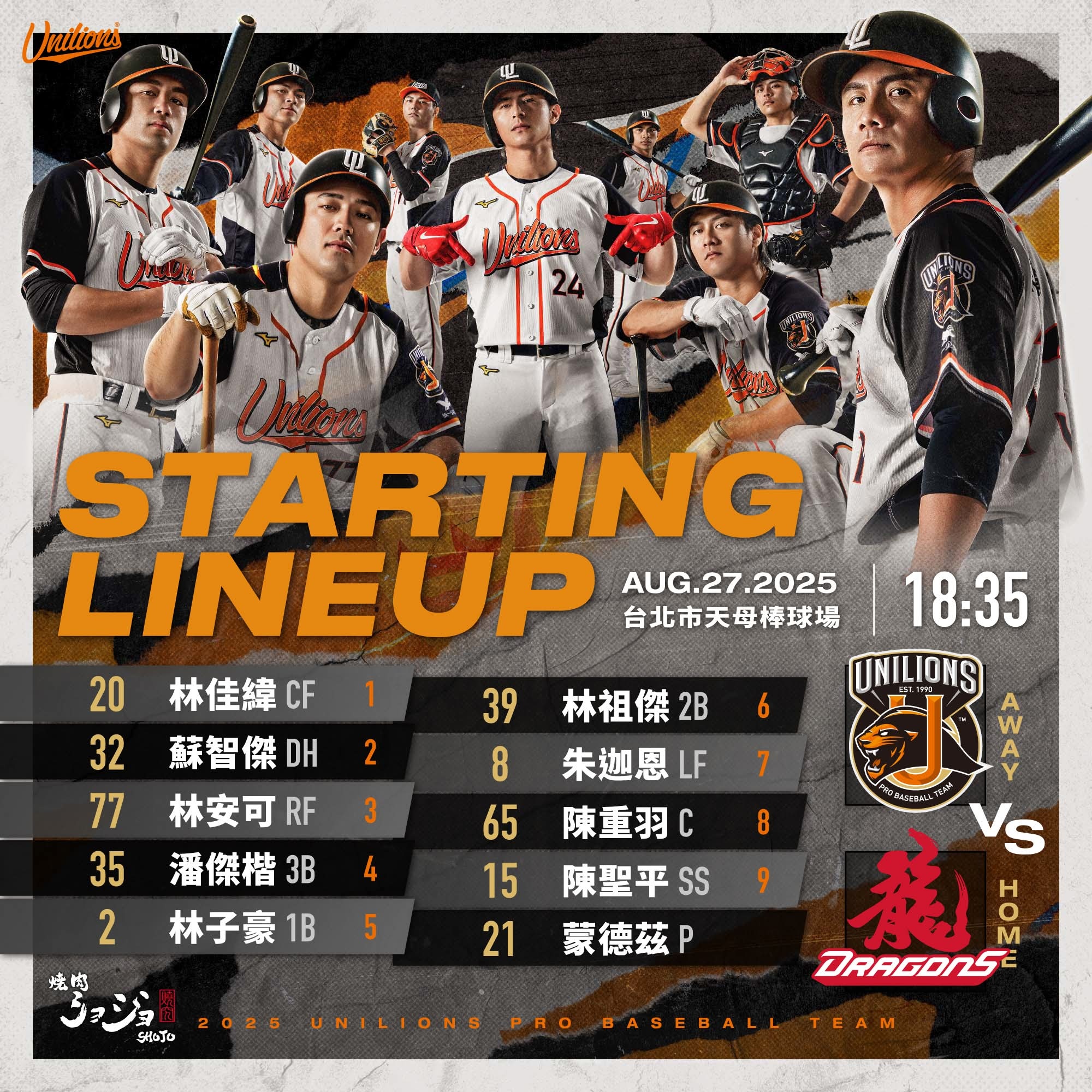8/29 (五) 16:05 統一獅 VS. 富邦悍將|2025中華職棒二軍例行賽