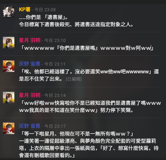 宙惠……你也是遺書屋劇本全知啊……難怪SC都超穩的……