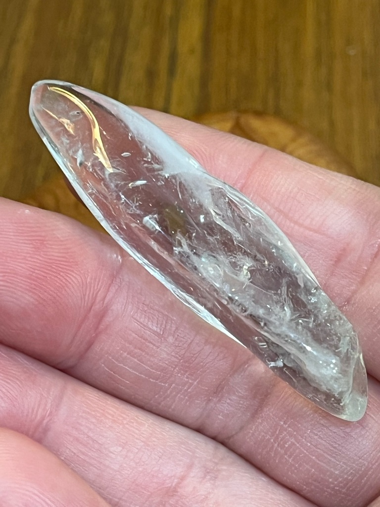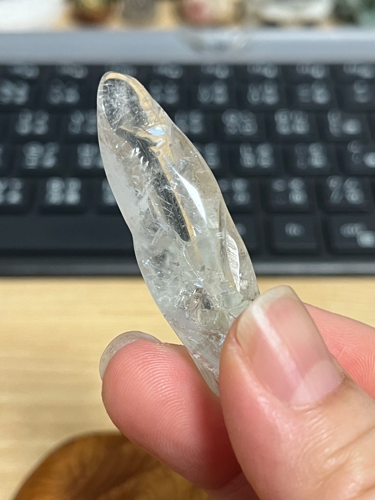 她的手感很有趣,我覺得像織布的梭子,拿在手上就會想做出穿引的動作........
