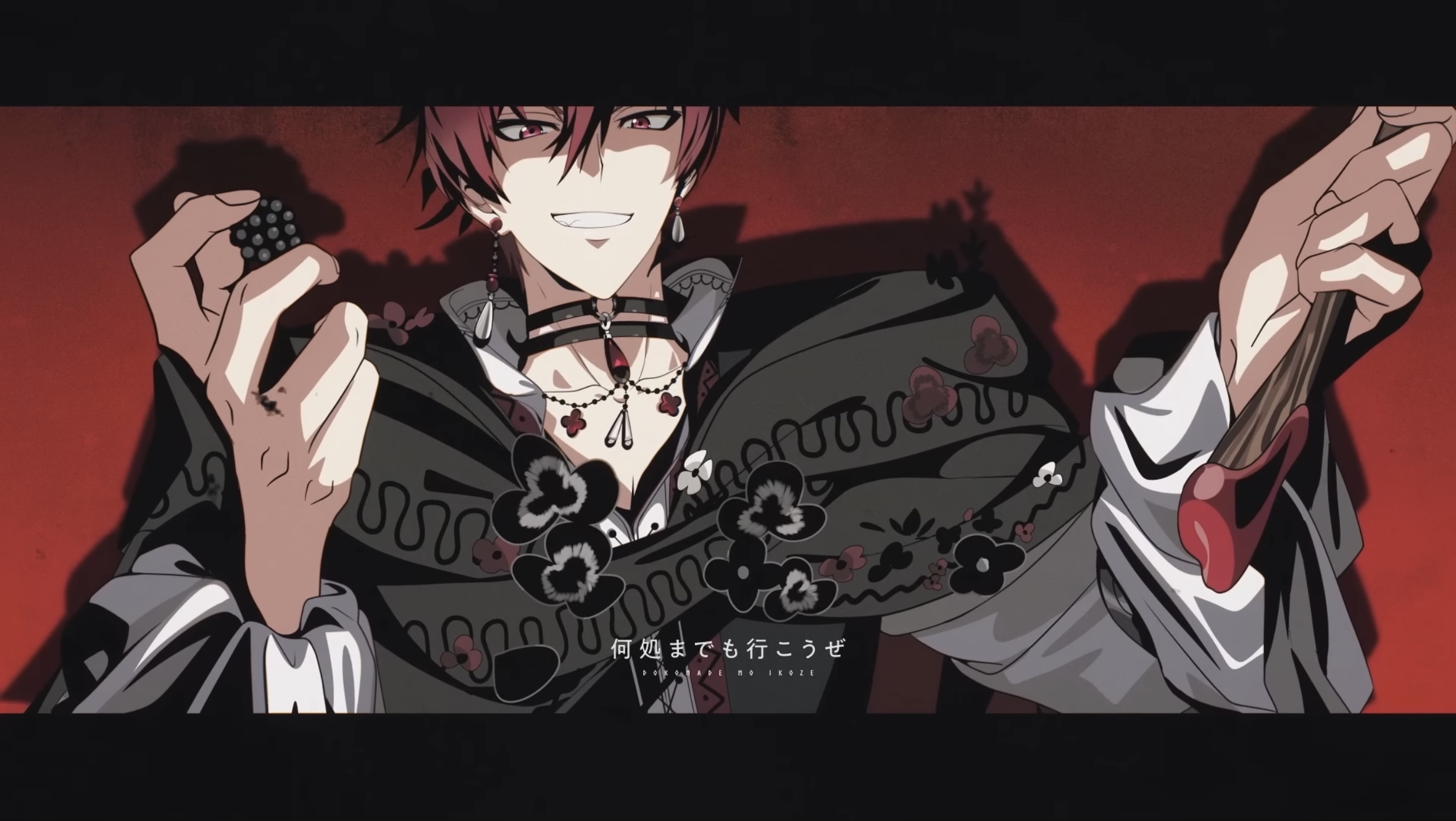 想很久為什麼一手拿人頭一手拿剪刀,難道是在暗指剪斷死人(前團員)的羈絆嗎?