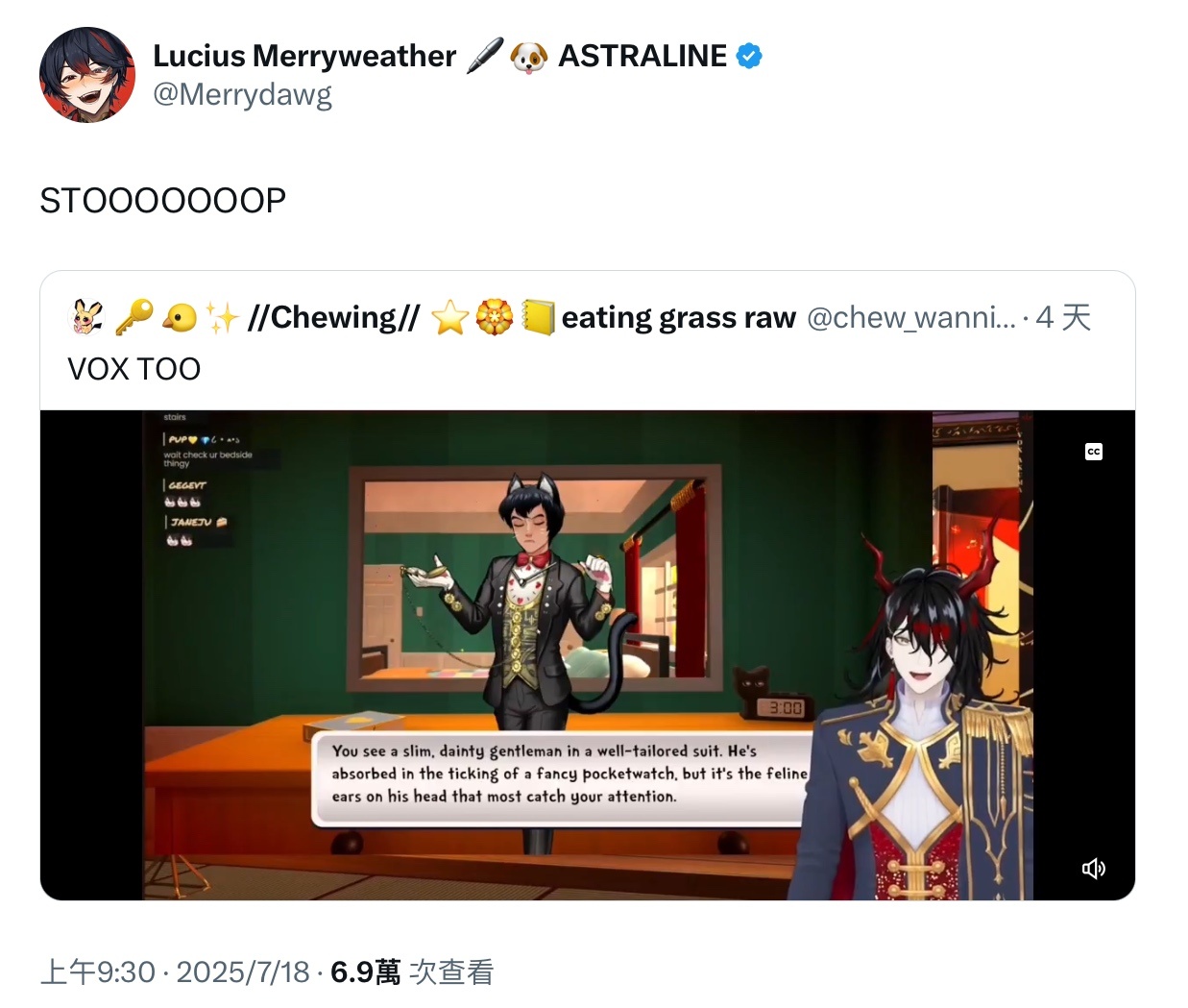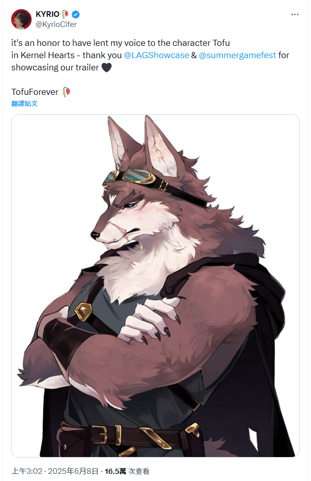 這角色是不是有點像VOX?比老師先達成目標之一是說KY之前也有幫遊戲角色配音,是叫豆腐的大狗狗www