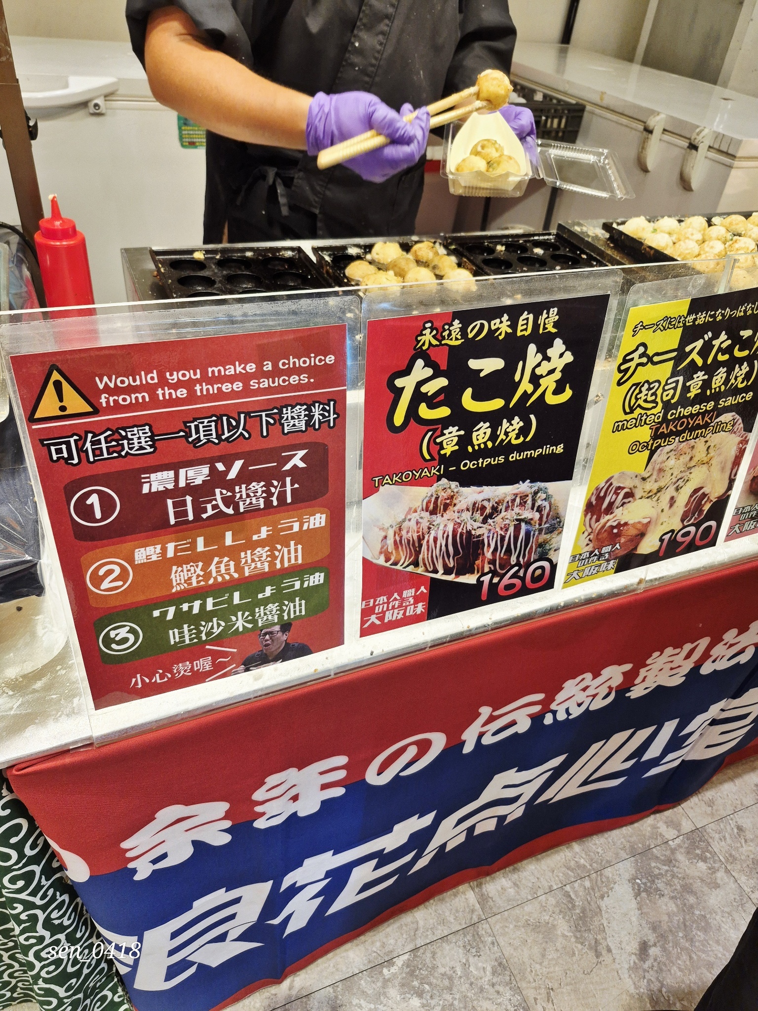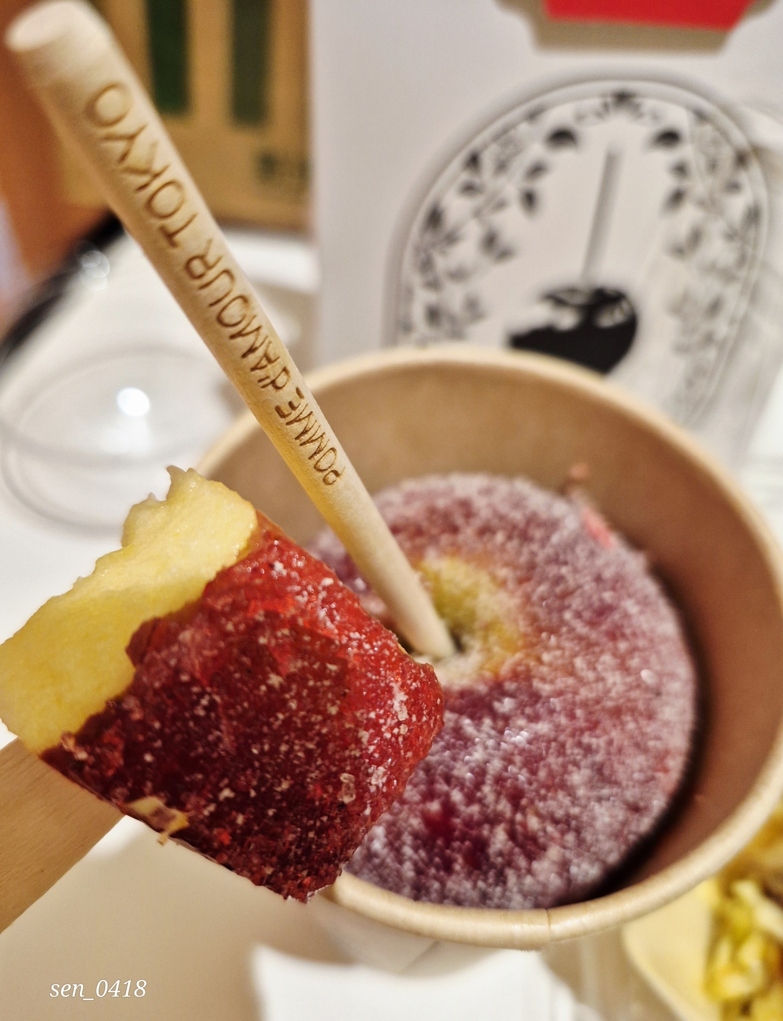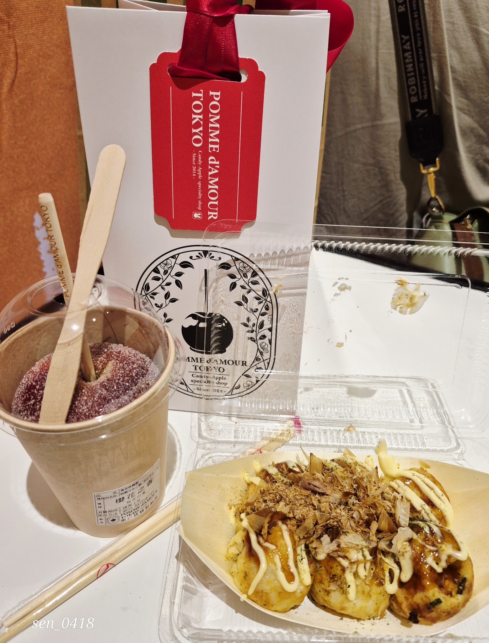 我剛才去吃了蘋果糖&章魚燒!
