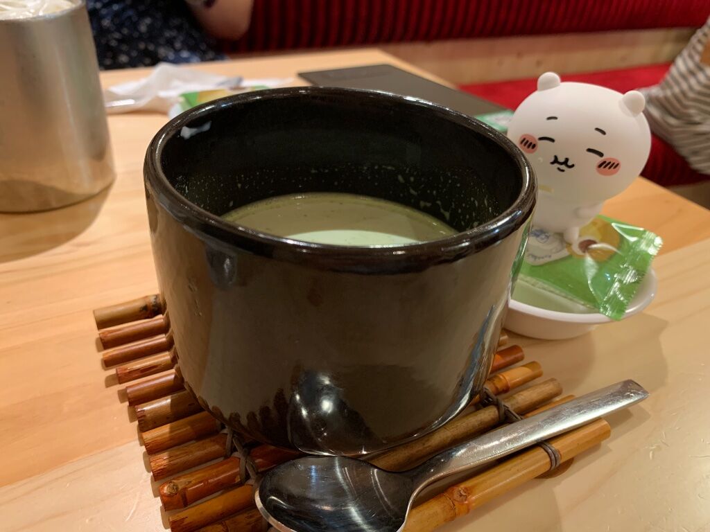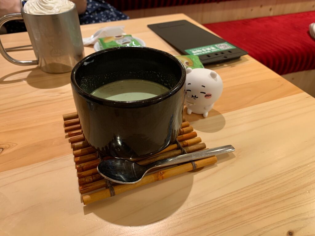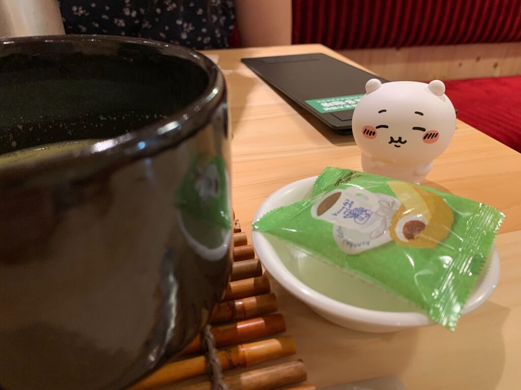 由於抹茶杯子太高,於是讓吉伊坐豆子上面手動長高
