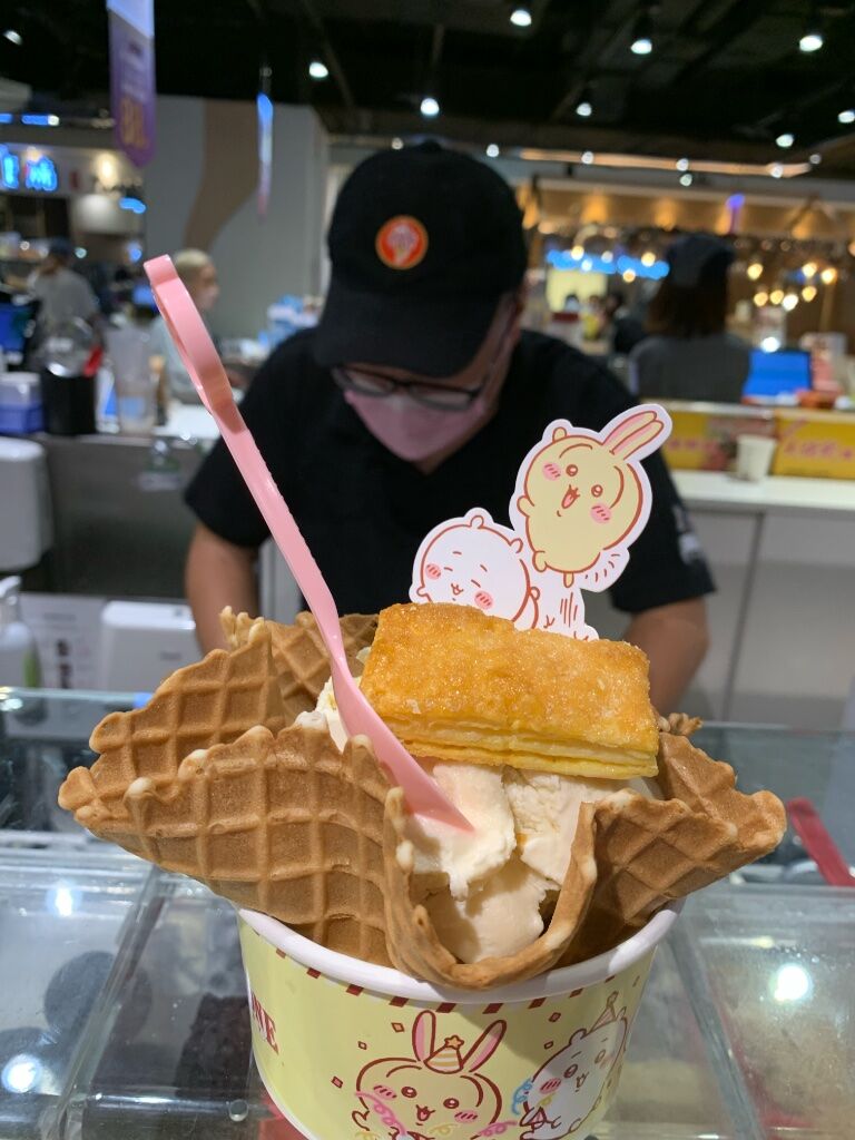 然後每一個點餐都是要吉伊卡哇聯名款加購徽章,看著店員一直把那袋徽章拿上拿下感覺有點好笑