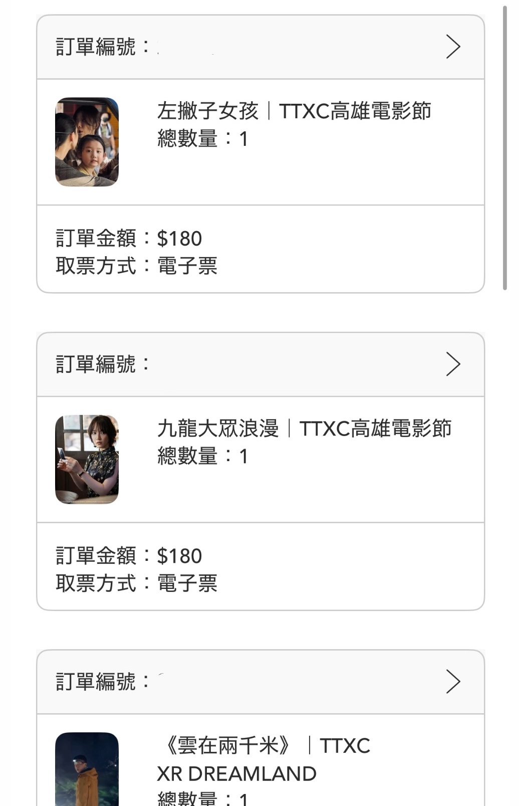本來想說乾脆看《雲在兩千米》就好結果買到後發現影人場都還有位置就順便撿了《左撇子女孩》跟《九龍大眾浪漫》的票