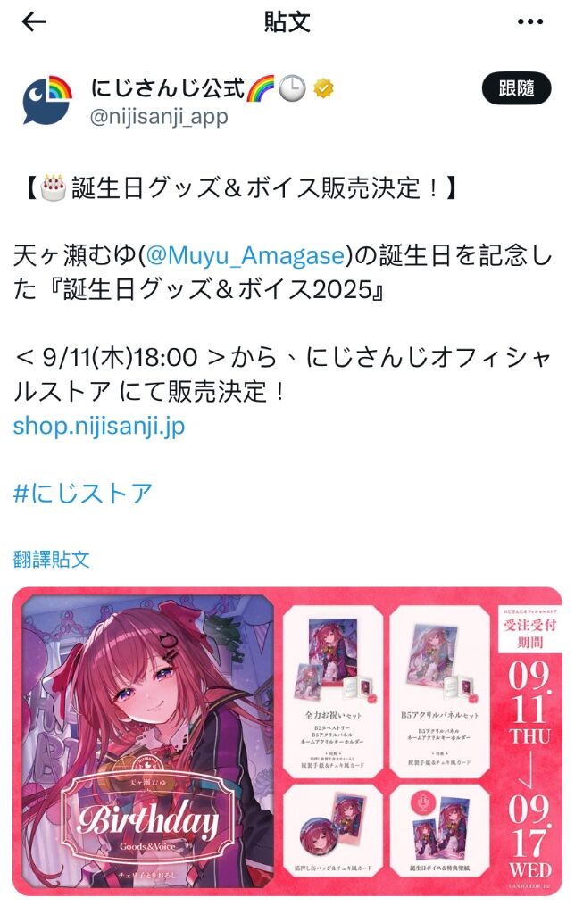 您好 想詢問能不能代購天ヶ瀬むゆ的生日拍徽組*1🙇🏻♂️