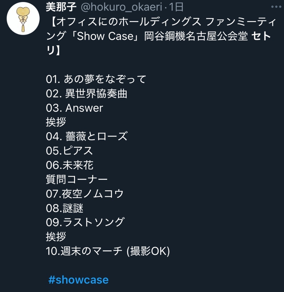 放一下推特上日飯寫的名古屋セトリ