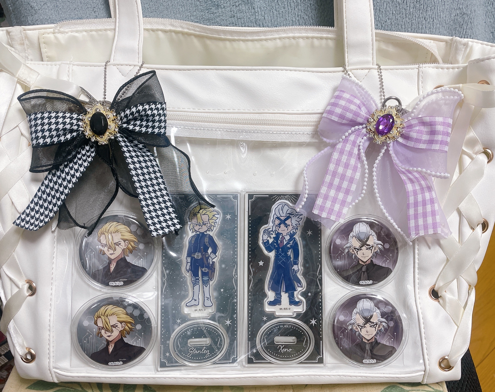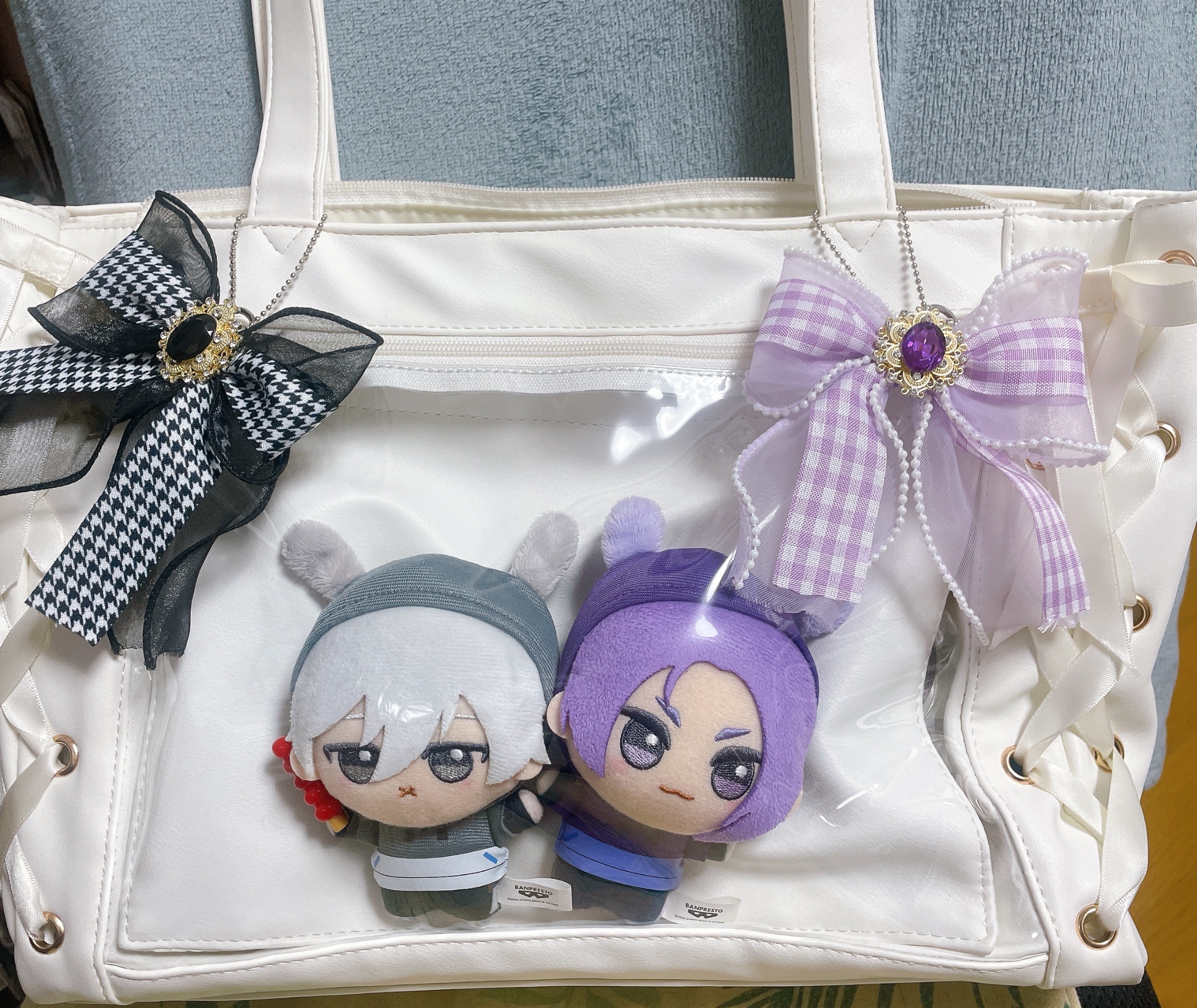先來放一下我帶出去的不怎樣痛的痛包,石頭的放裡面,蓋上附的布後再放凪玲兔兔娃,等於我有兩種佈景可以選擇