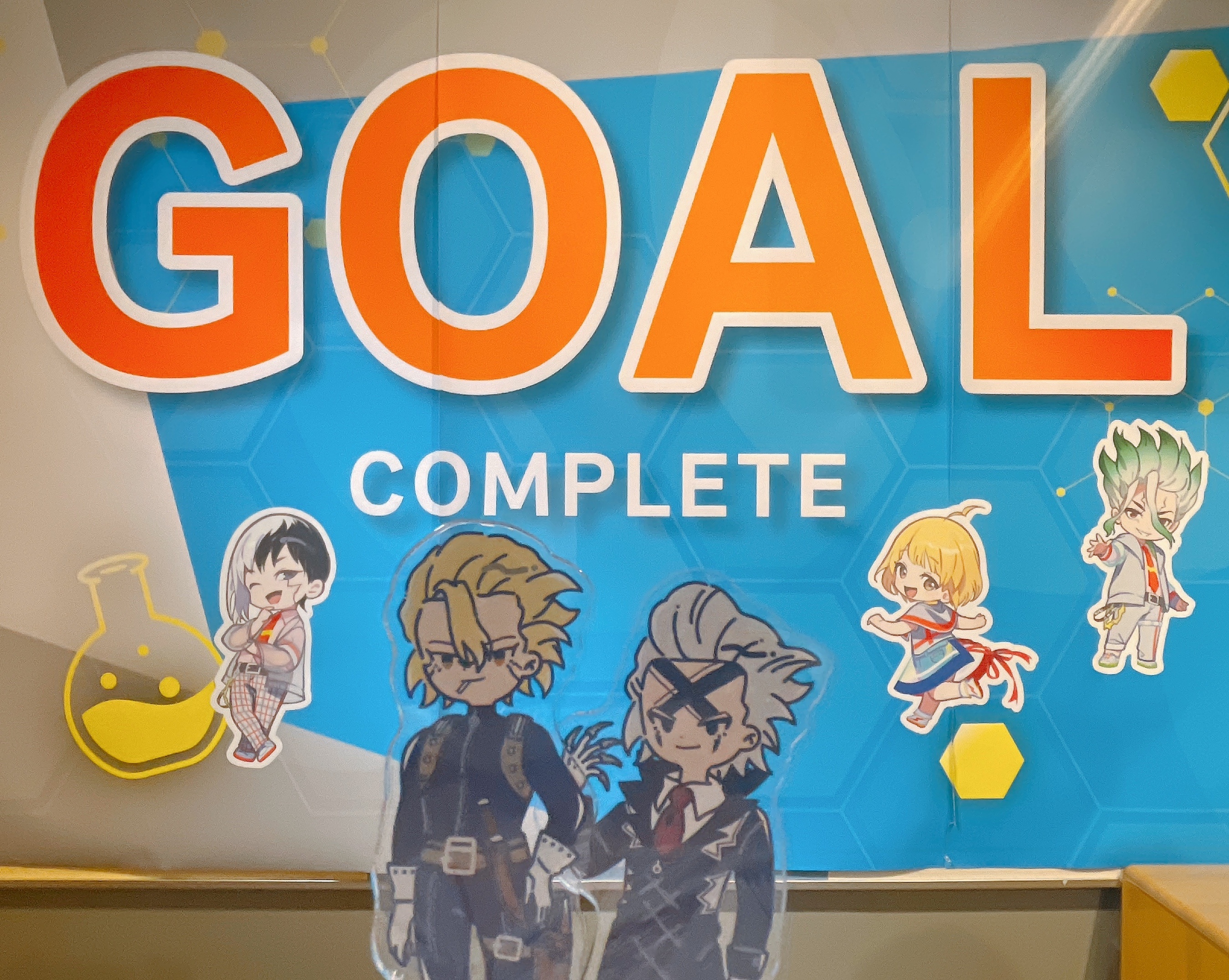 展區分2、3、4樓,最難的應該是找機械千空了吧,總共有14隻,還是需要花一點點時間去找每層樓各有幾隻,再來就是西瓜的印章,居然被放在比GOAL還遠的地方,不愧是隱藏高手西瓜