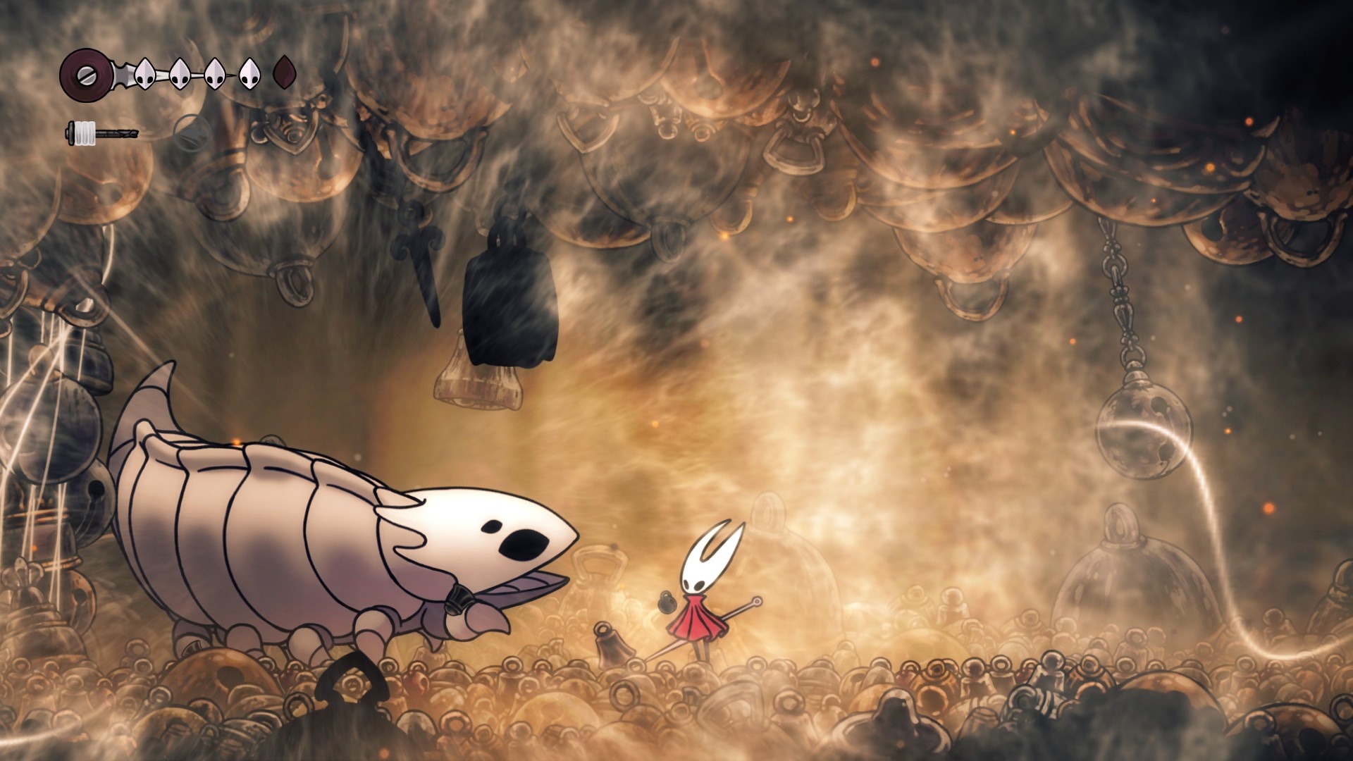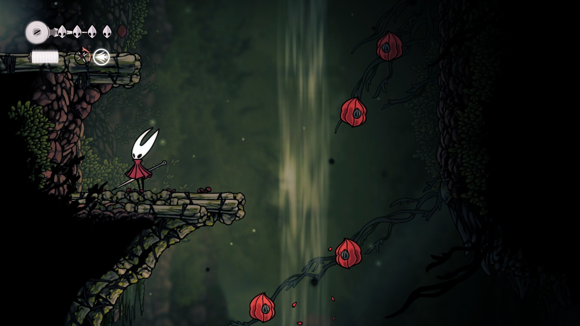 相較於小騎士那消耗1/3能量槽,回復1HP的行動,小姐姐的回復動作改成一次消耗整個能量槽,回復3HP,且可以在空中進行回復(若如此做,則回復狀態下滯空,還不確定有沒有辦法自行打斷回復),整體來說就沒辦法像小騎士那麼靈活地到處抓時機回復了,即使在平常探圖的時候也得謹慎考慮回復的時機