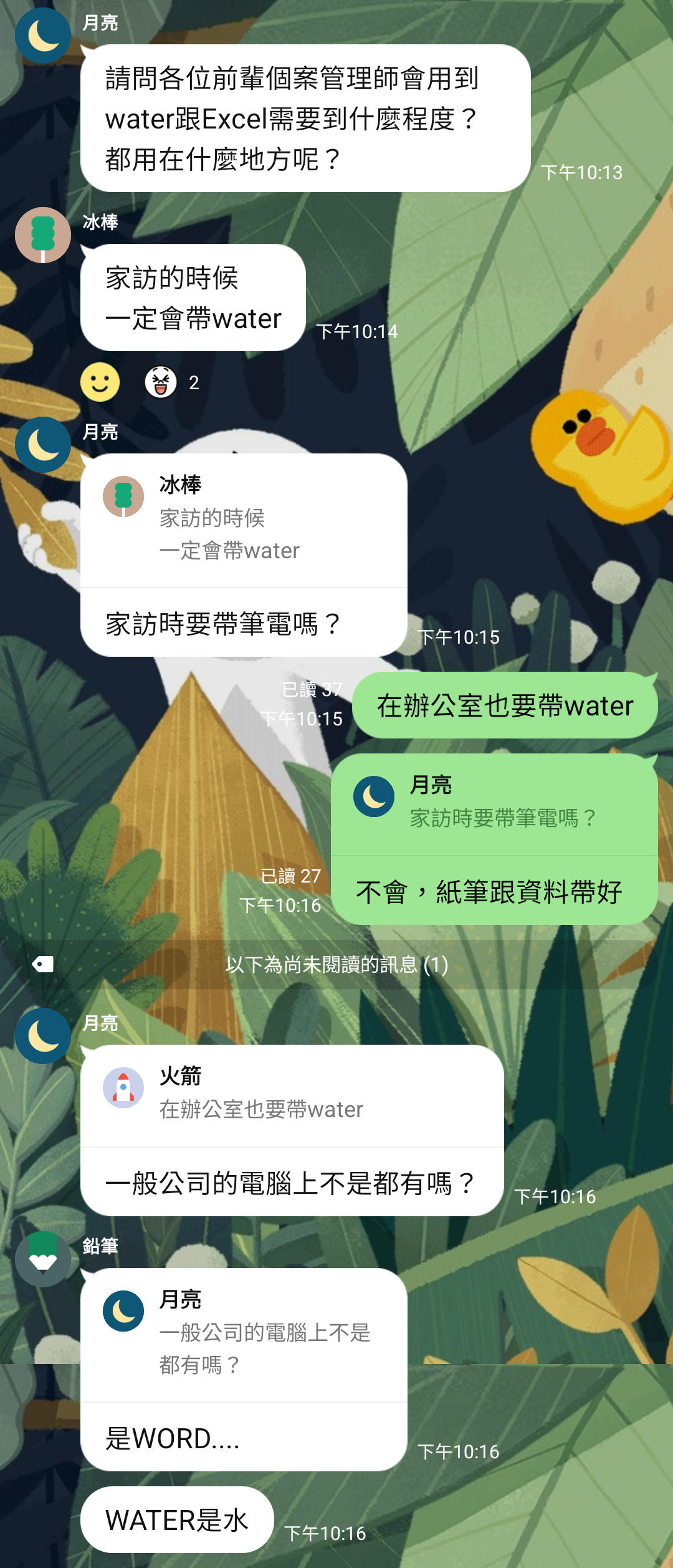 我有點像是小組長,偶爾要管一下(?)前同事:?????不是