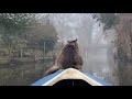 在晨霧裡用獨木舟溜貓,感覺真愜意