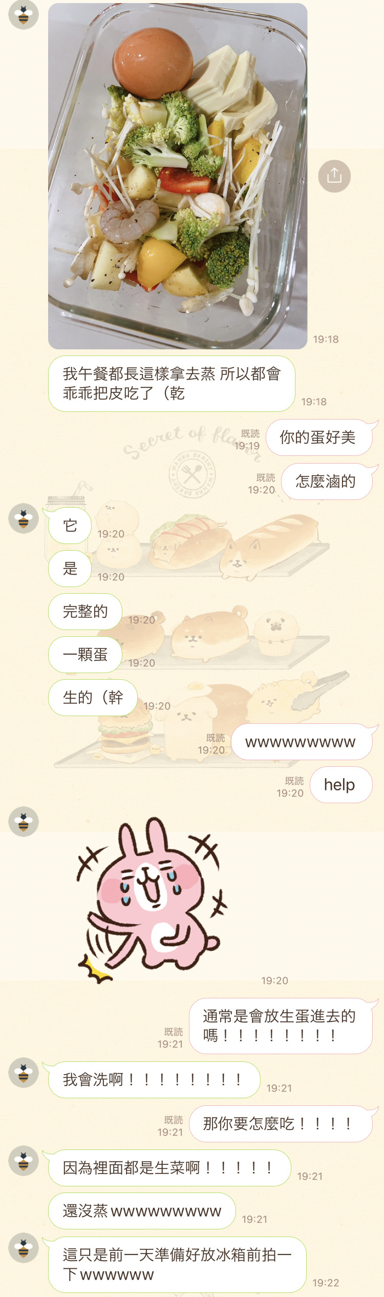 :(尷尬too)沒關係不用,我宵夜吃這個⋯⋯