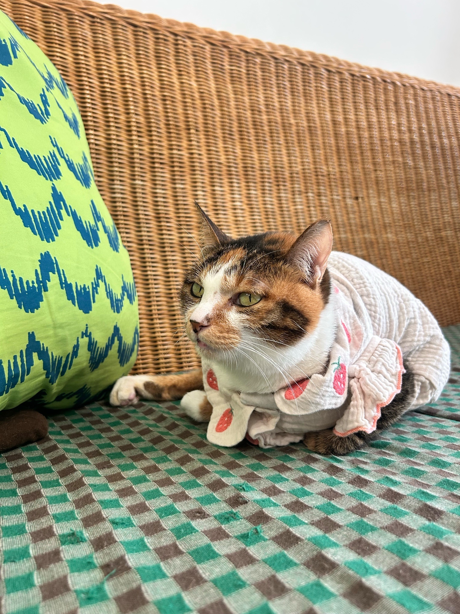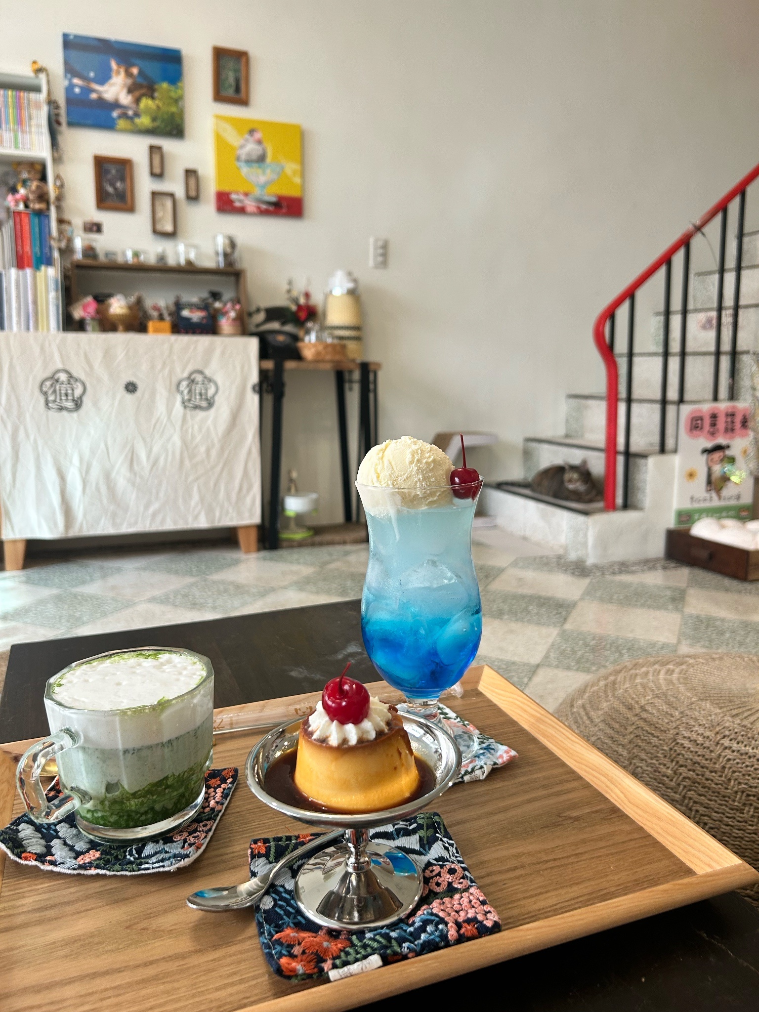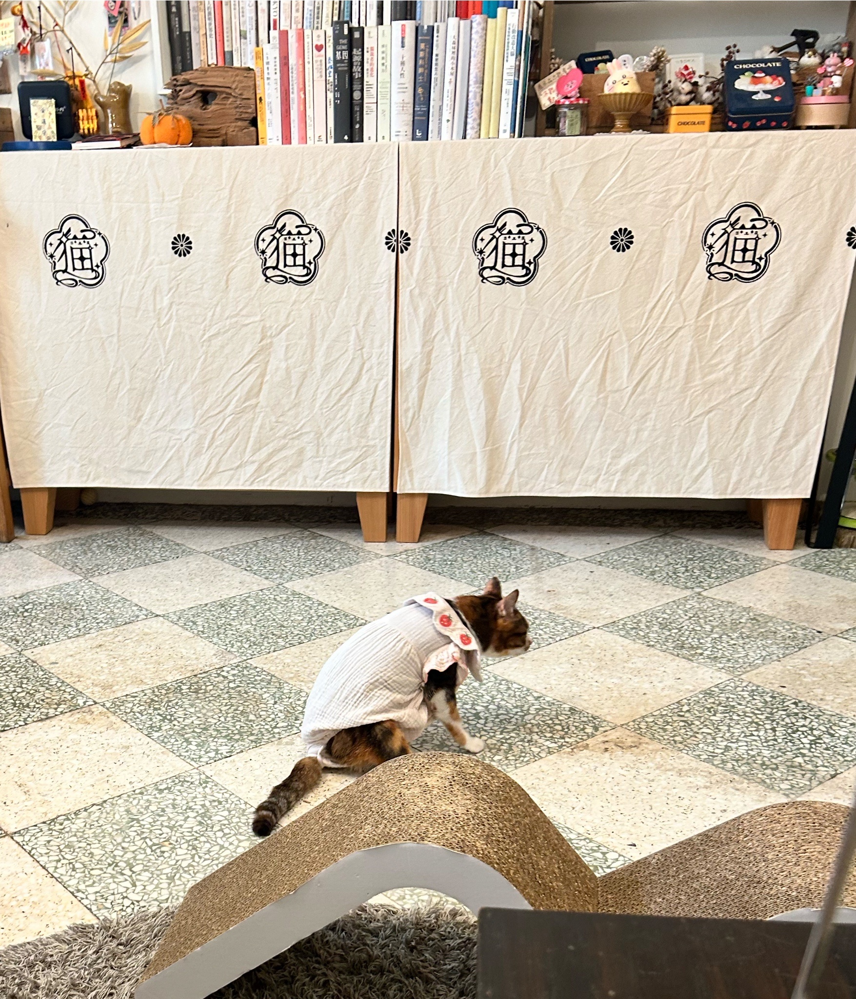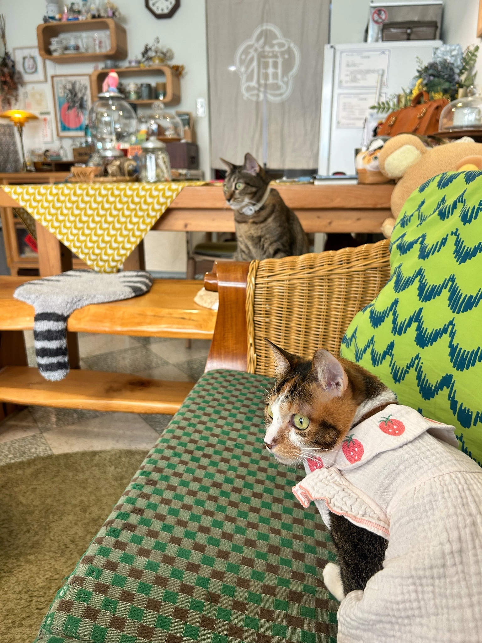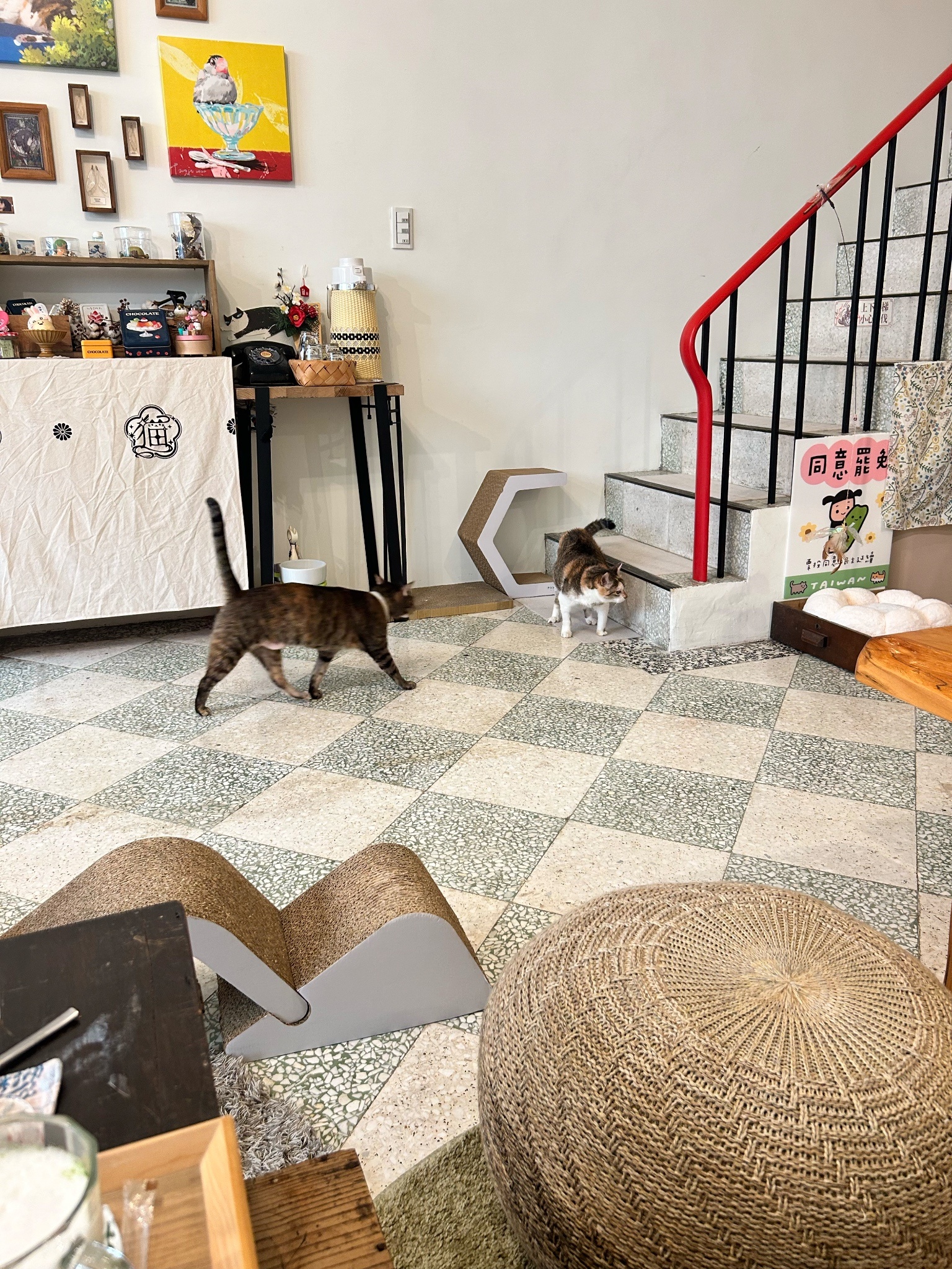 原本以為下半身不自由(?)的穿衣貓貓就是常駐在沙發椅上,因為座位不多我就坐他旁邊也是滿怕打擾到他讓他不舒服的