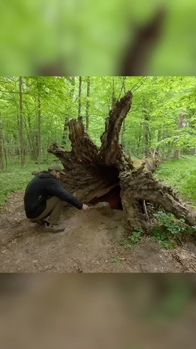 Secret Dugout Inside a Hollow Tree. Full build #poli...