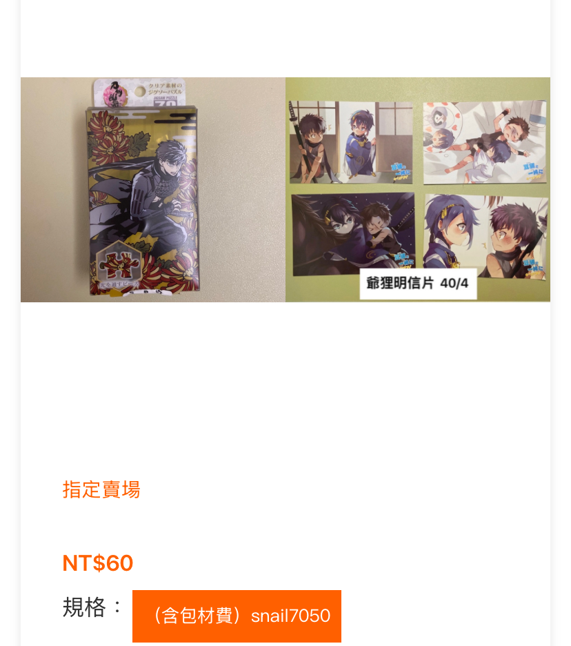 snail7050: 麻煩在指定賣場下單自己的名字即可(價錢已包含手續費)