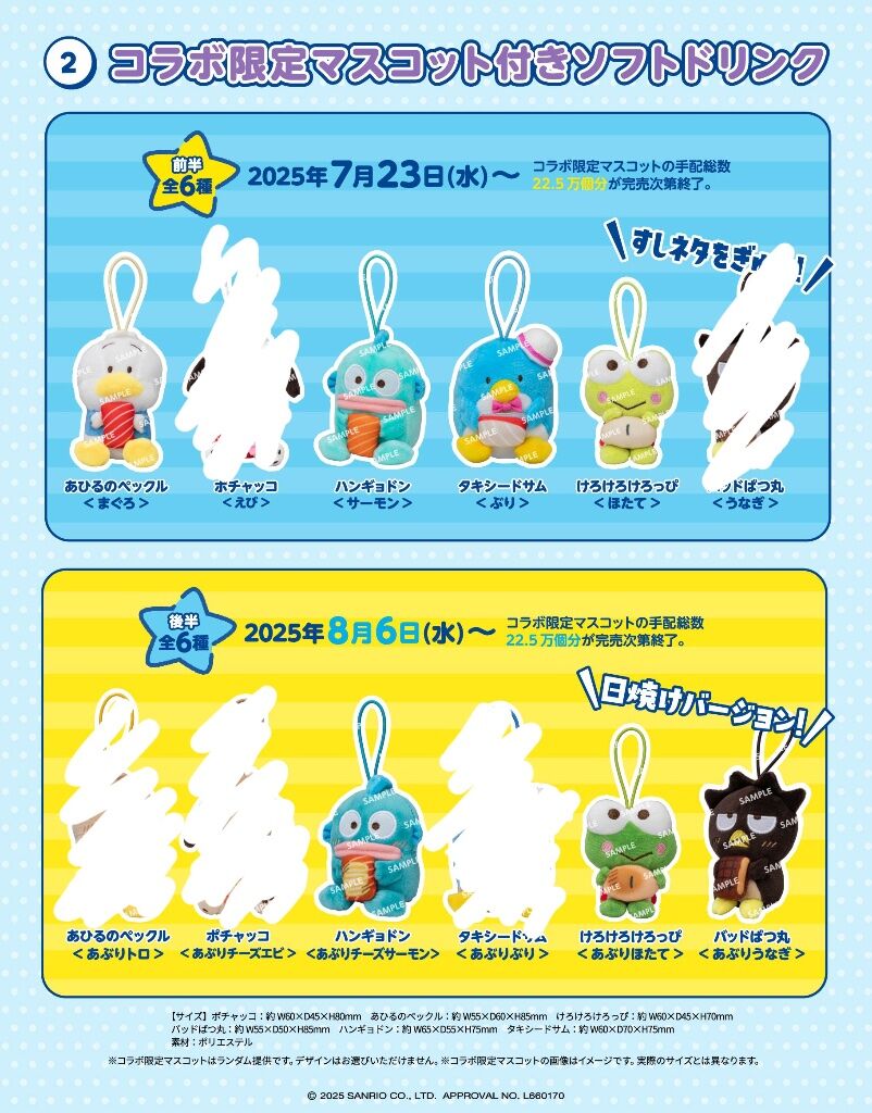 壽司郎三麗鷗合作吊飾娃 300/1隻