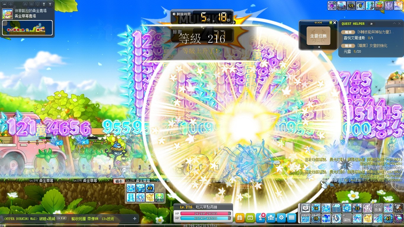前天181→216,最後壓線吃了十張,一邊聊天一邊打,裝備太爛,都打那種十幾分鐘的,差點沒打完
