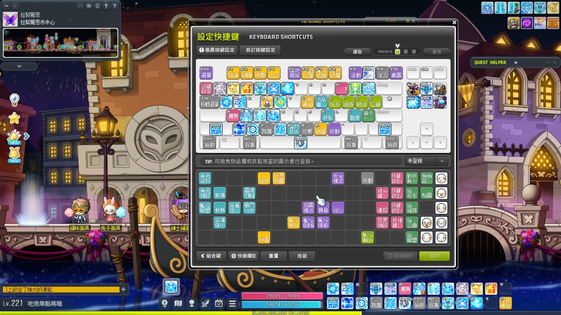 今天在那邊搞按鍵配置,有夠手忙腳亂,東西太多ㄌ,原本還在想說冰雷還好嘛,沒有卡莉那麼多攻擊鍵要按,沒有,強化技好多