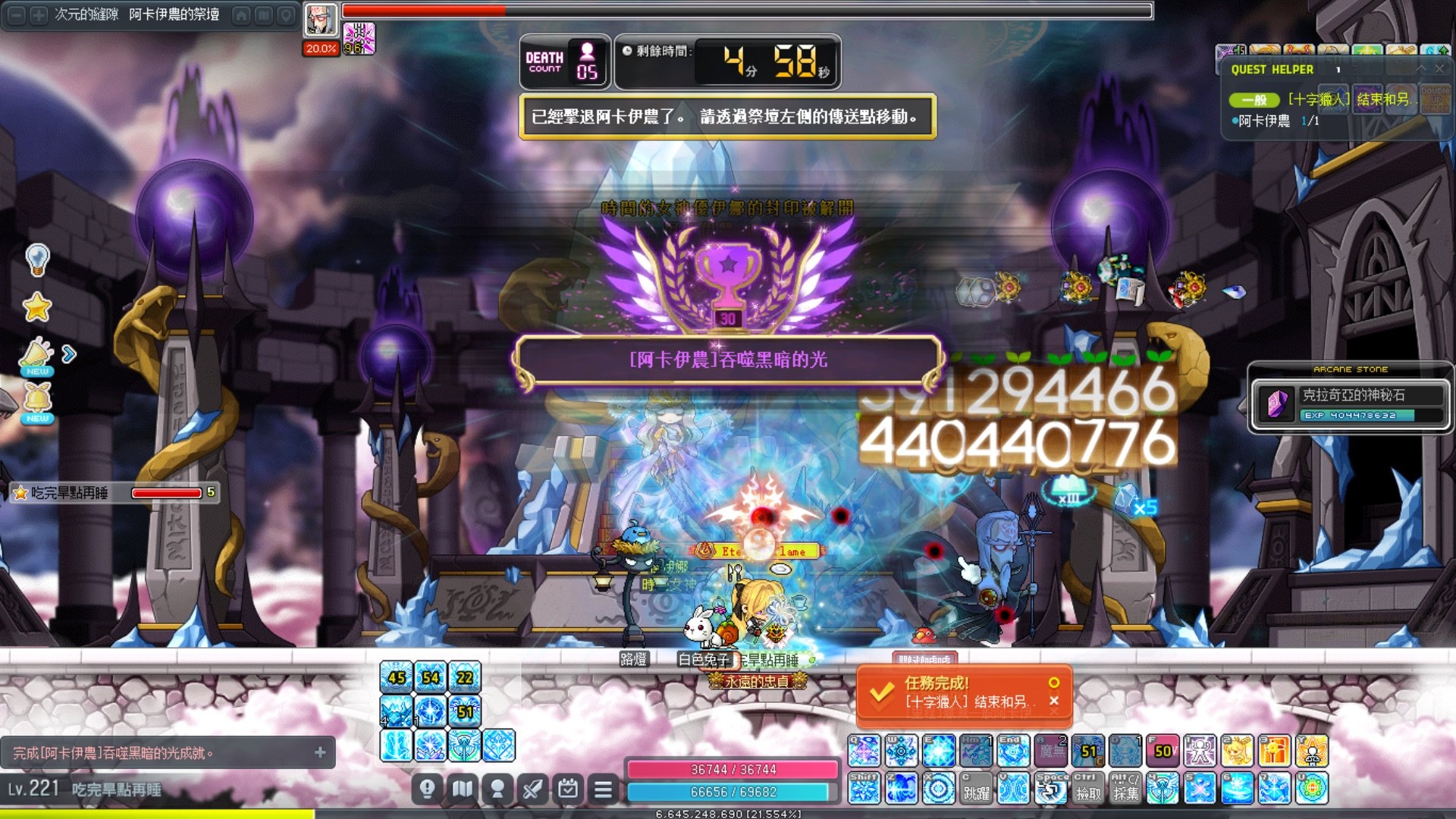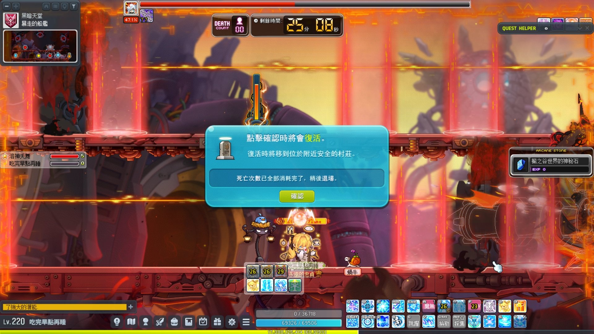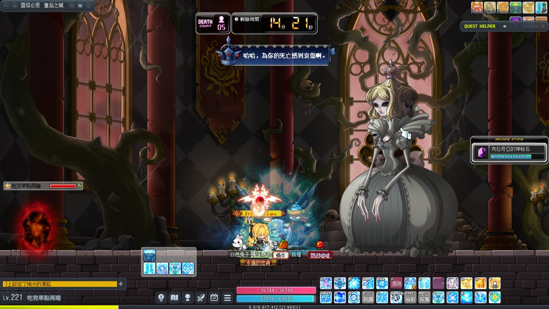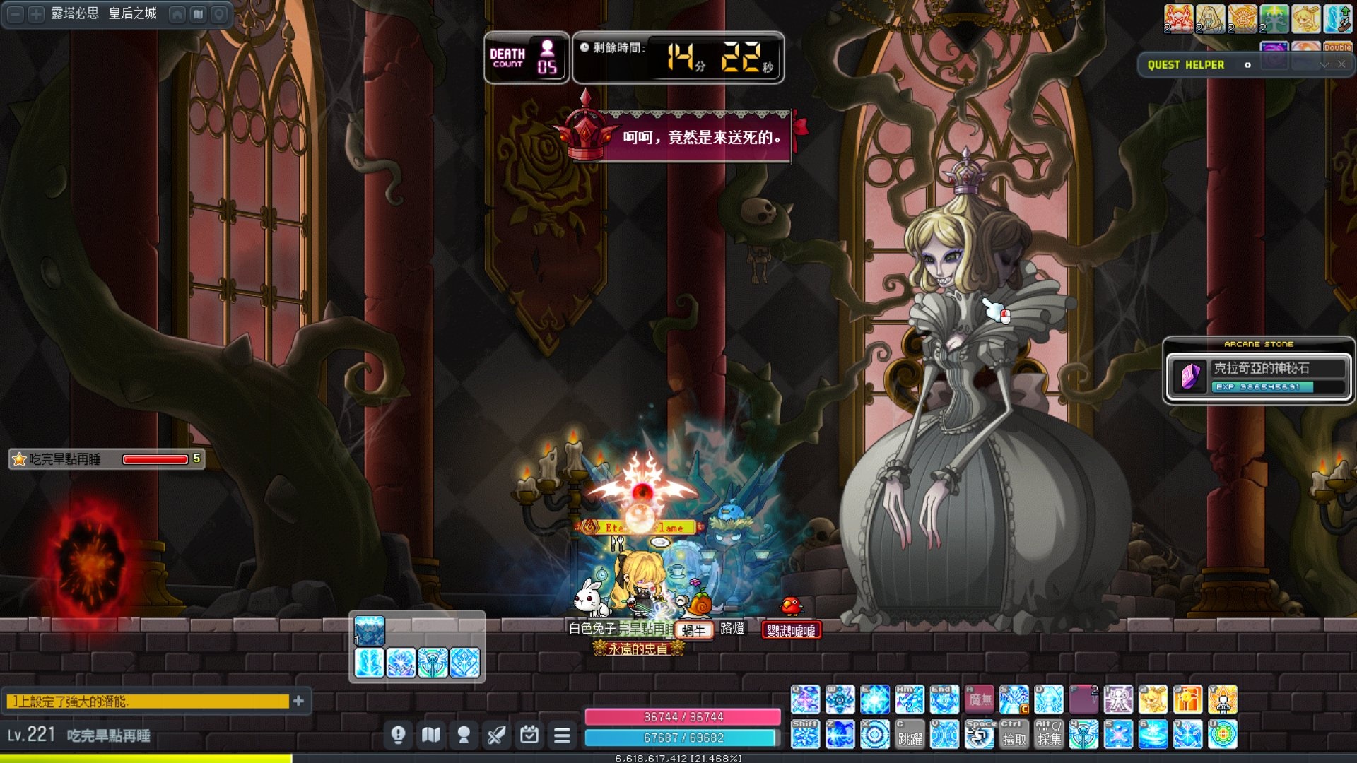 除了死掉的史烏以外,最麻煩就這傢伙了,畫面很滿,還要解除咒印,還有螢幕保護程式在那邊飛!!!啊!!!然後我完全看不到王在哪裡!!!只能主動技亮了就隨便按!!!