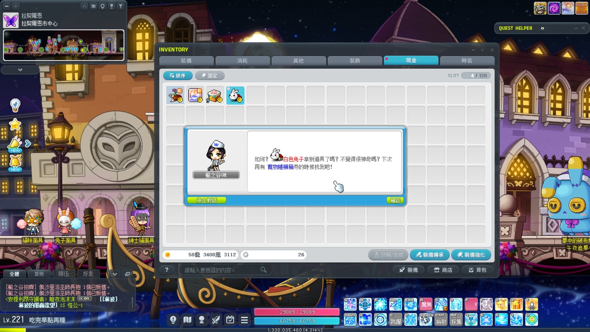 結果後來才知道兔子會變L碼是因為那個什麼寵物巨大化的BUFF導致的,之前不知道為何對蝸牛變大都沒反應,可能是720p的點陣圖兔子比較顯眼吧