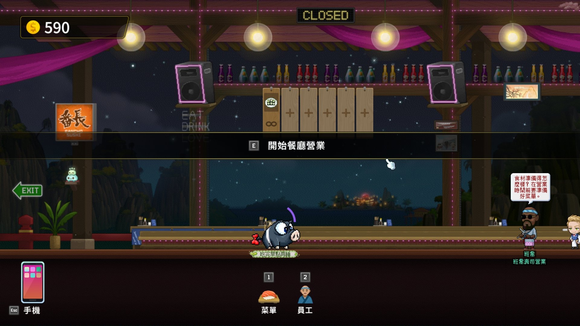 我記得我本家好像還沒開滿,一些夜行性的生物好懶得去抓,不要佔用我開店賺錢的時間!