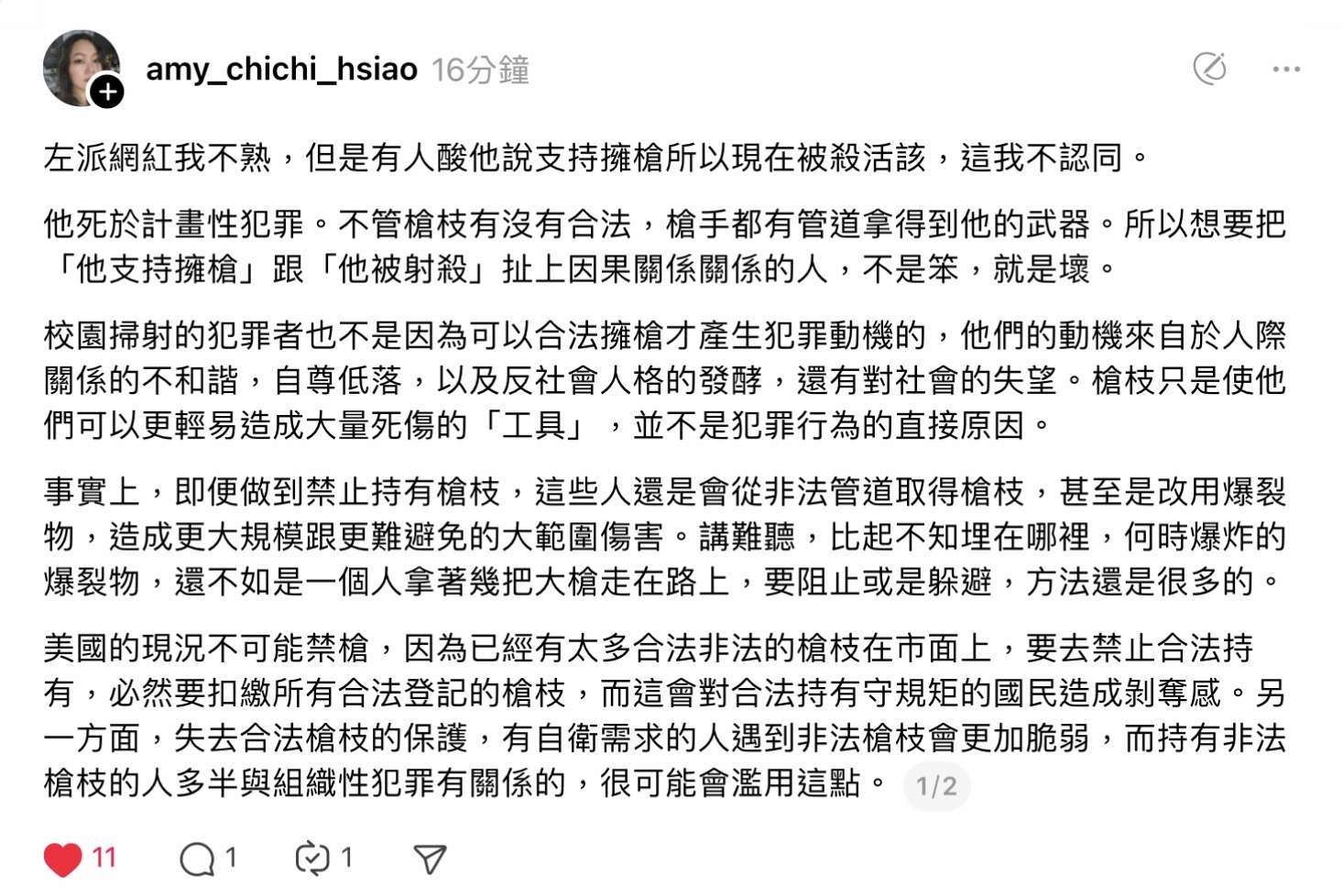 我再說一次擁槍權與政治暗殺,是不同的東西