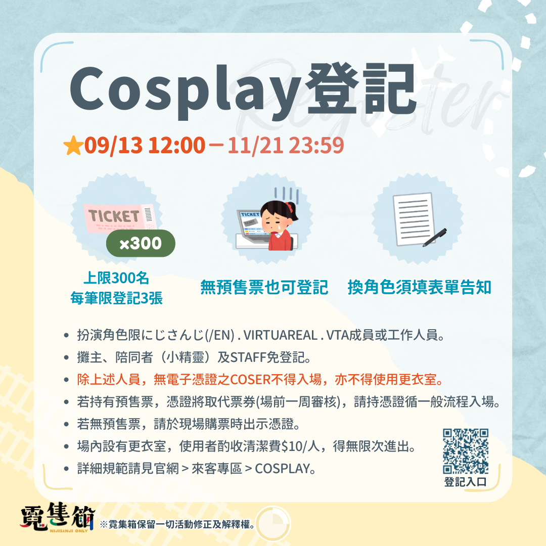 @nijionly_tw - Cosplay登記資訊 登記開始:9/13(六) 12:00 限額登記制,...