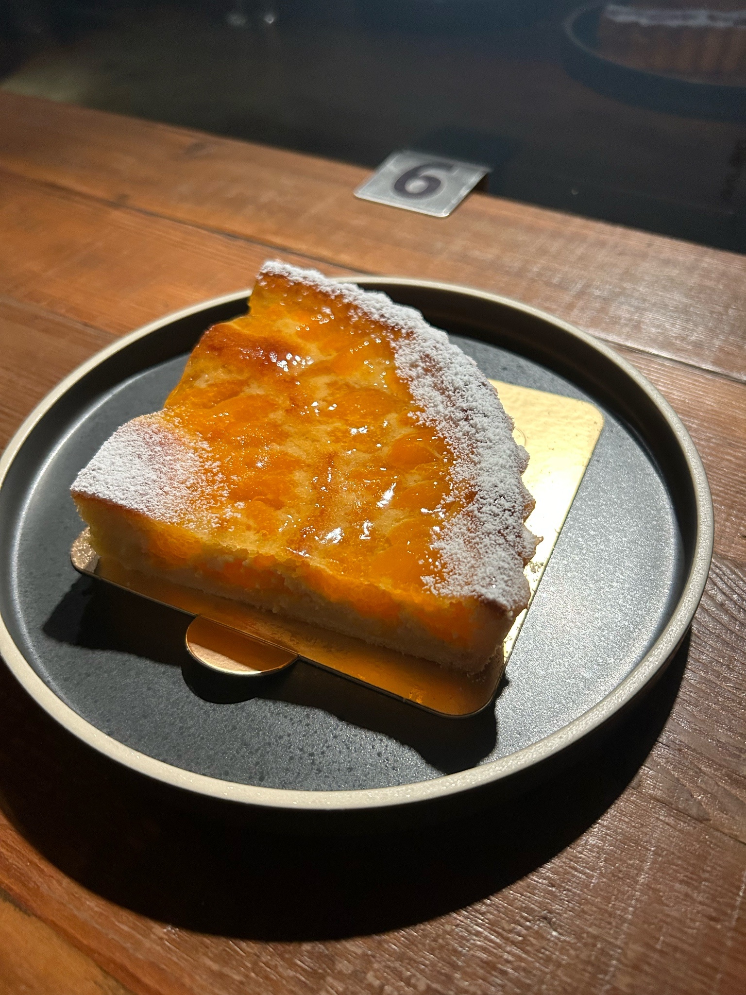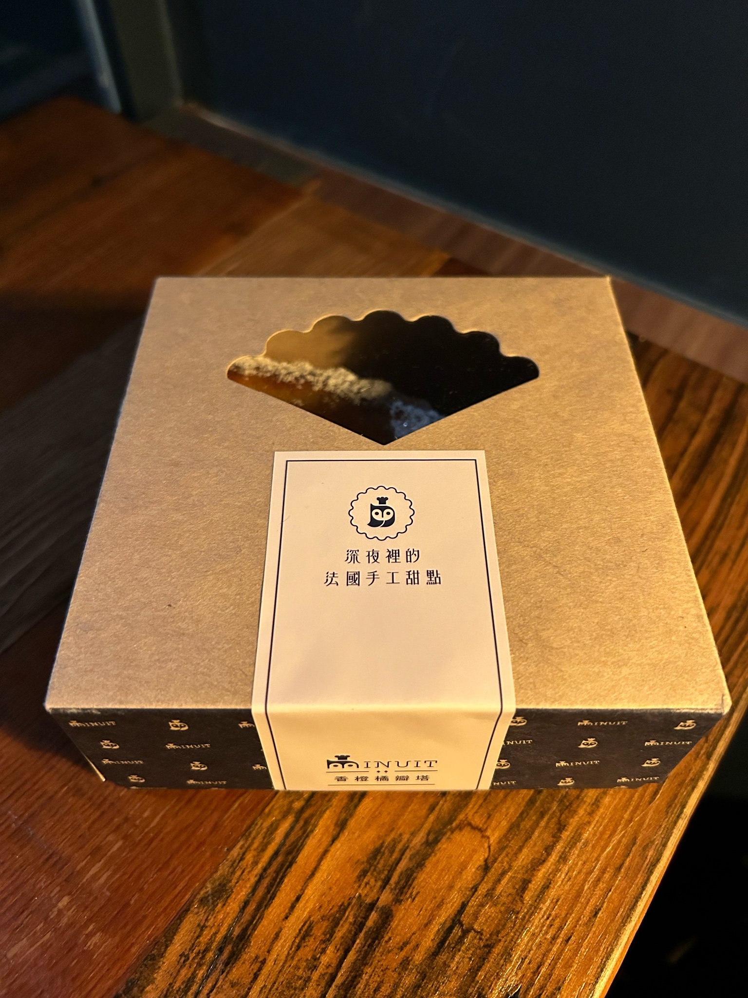 飲料跟甜點都能抵低消,正開心不用喝第三杯飲料時發現每個甜點都貴到,點了相對便宜但還是接近四百塊的橘子塔,接下紙盒才發現是深夜裡的法國手工甜點,也算是歪打正著,畢竟此店名氣太大太令人好奇了