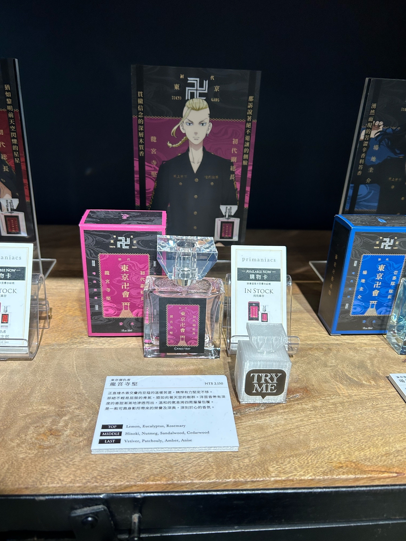 現場有鬼滅、芙莉蓮、初音、海賊王、我英、巨人、防風跟東卍,聞了一輪最喜歡里維的味道,清爽的皂香超符合人設,龍宮寺的味道也蠻符合的,莫名覺得是夢男夢女噴了會很快樂的味道(?