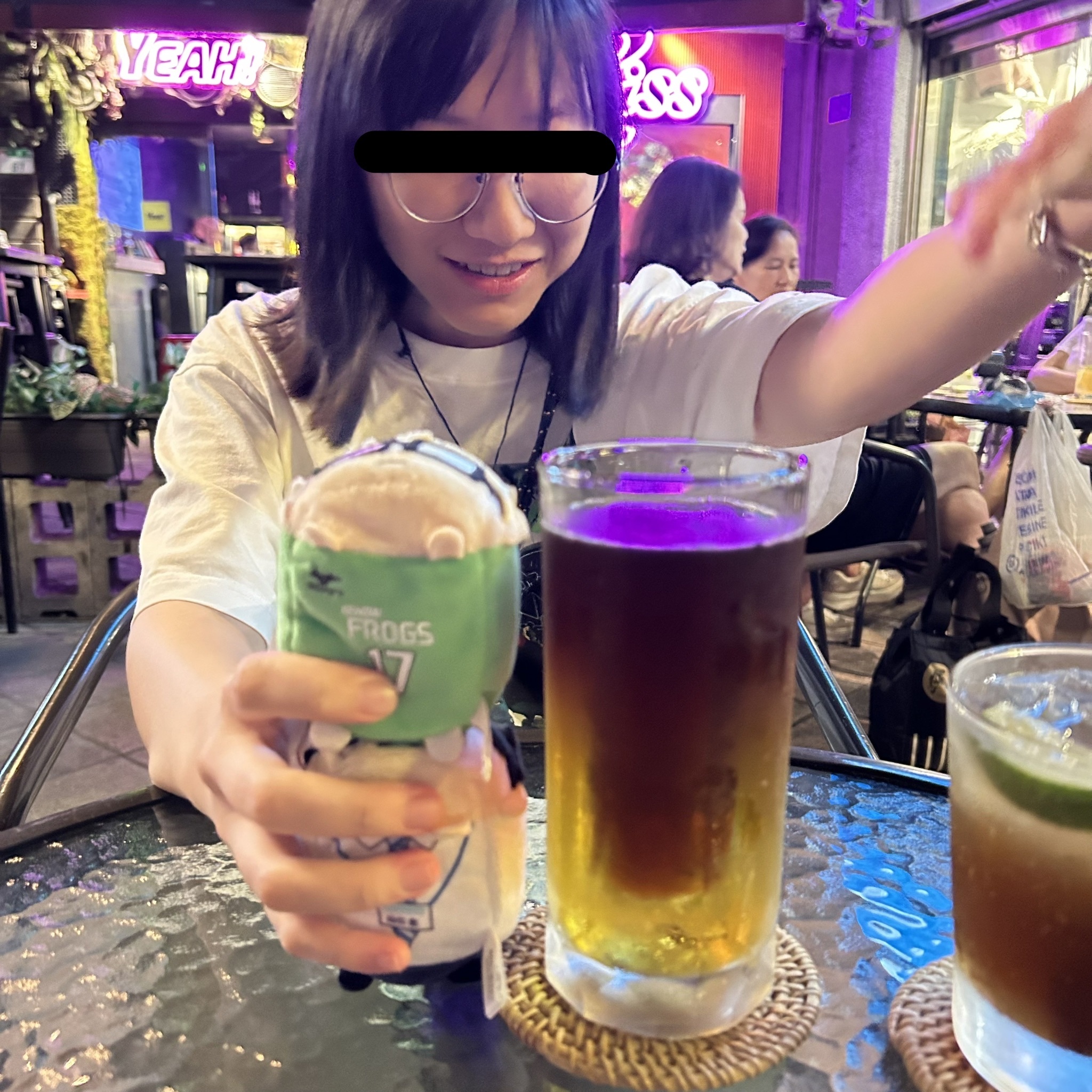 也從來沒喝過杯子高達兩隻趴娃的野格炸彈,衝擊到詫異之手都比出來了😍