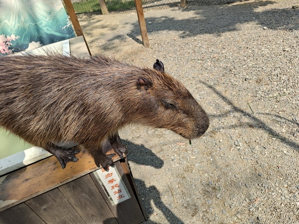 第一天高鐵站出來之後去咩咩上樹餵動物,離高鐵站五分鐘車程左右。總之就是餵動物的地方,水樂園還在蓋,可能要等明年了。