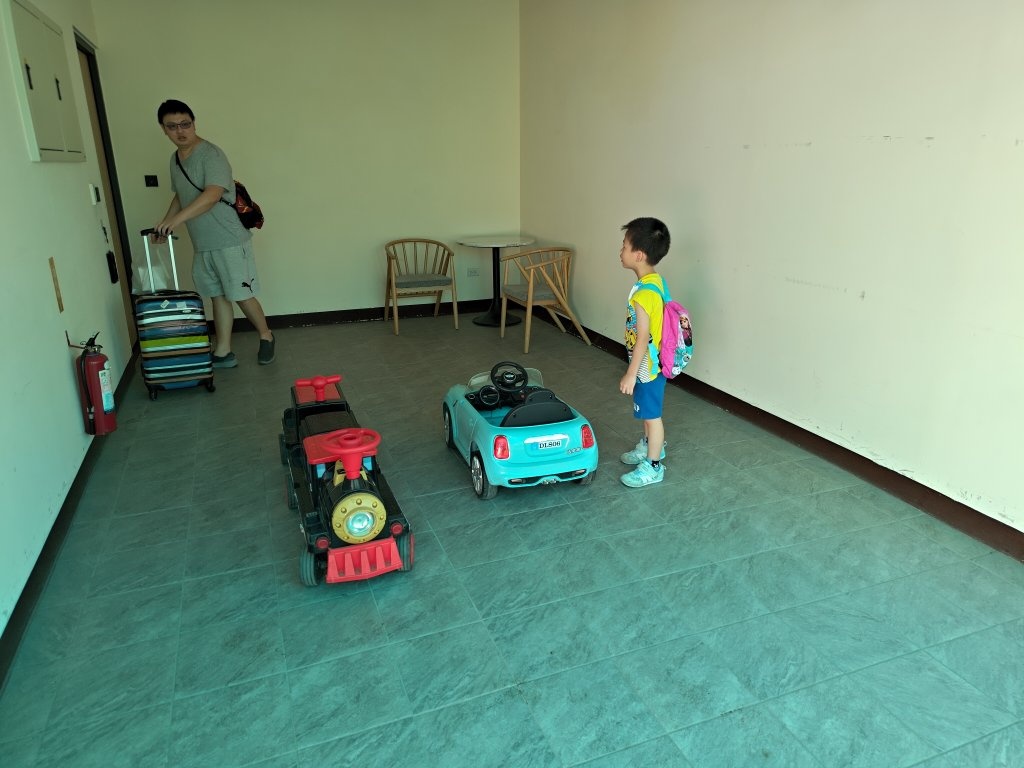 棒棒積木飯店,我們住的是親子館,有小車車可以開,其實就是在外面繞一圈,如果沒有玩伴會有點無聊。