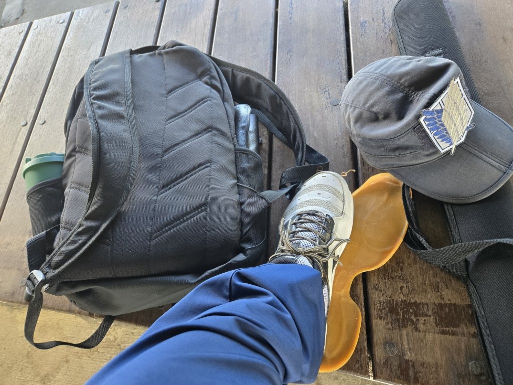 跟上消防朋友鍛鍊,然後鞋子爆了