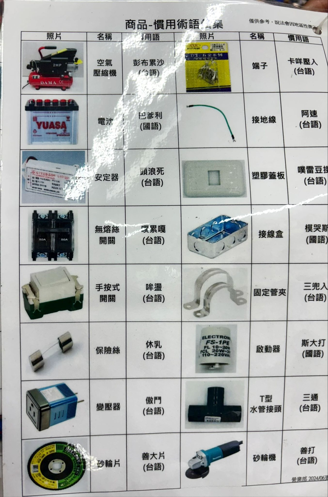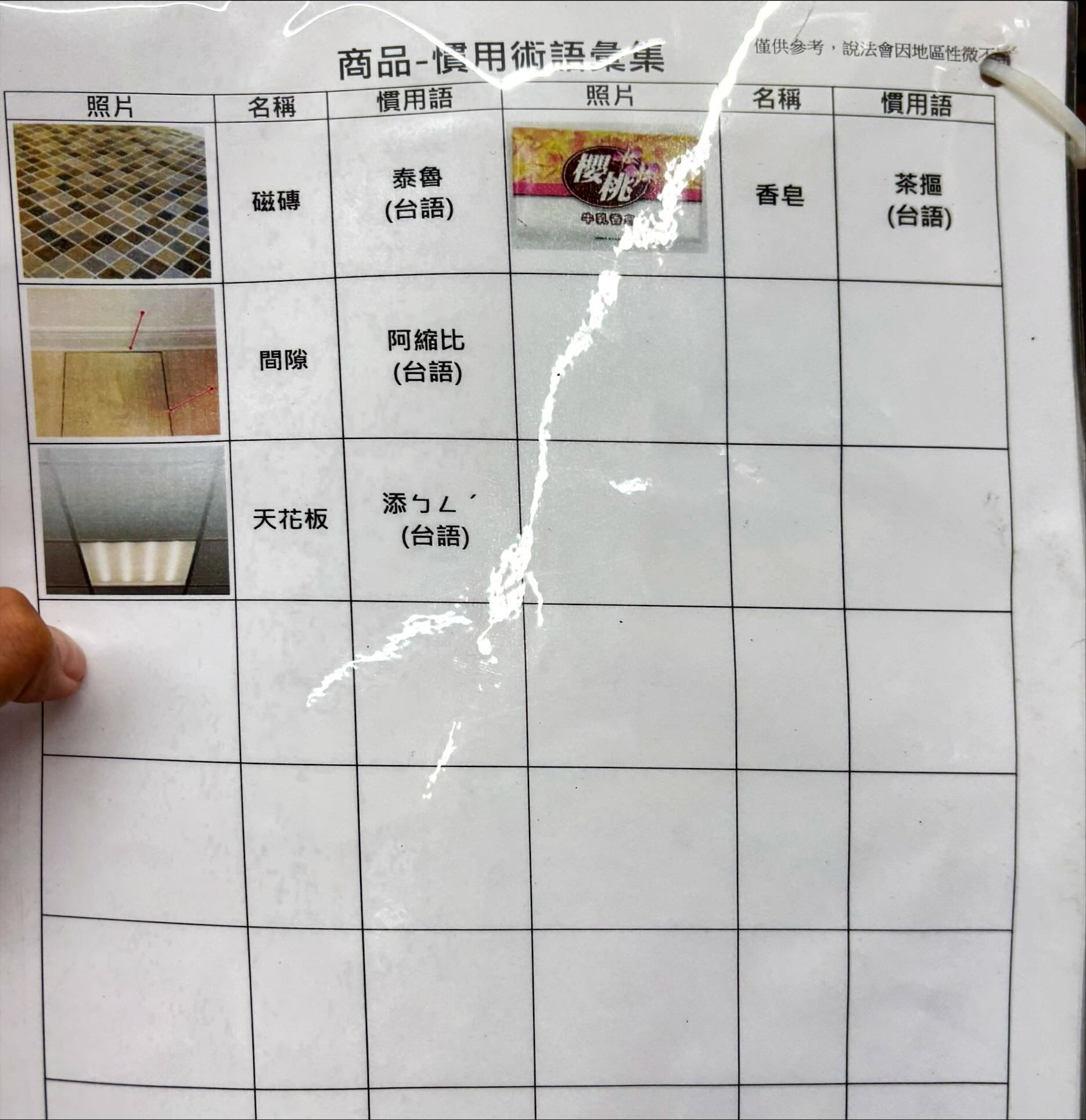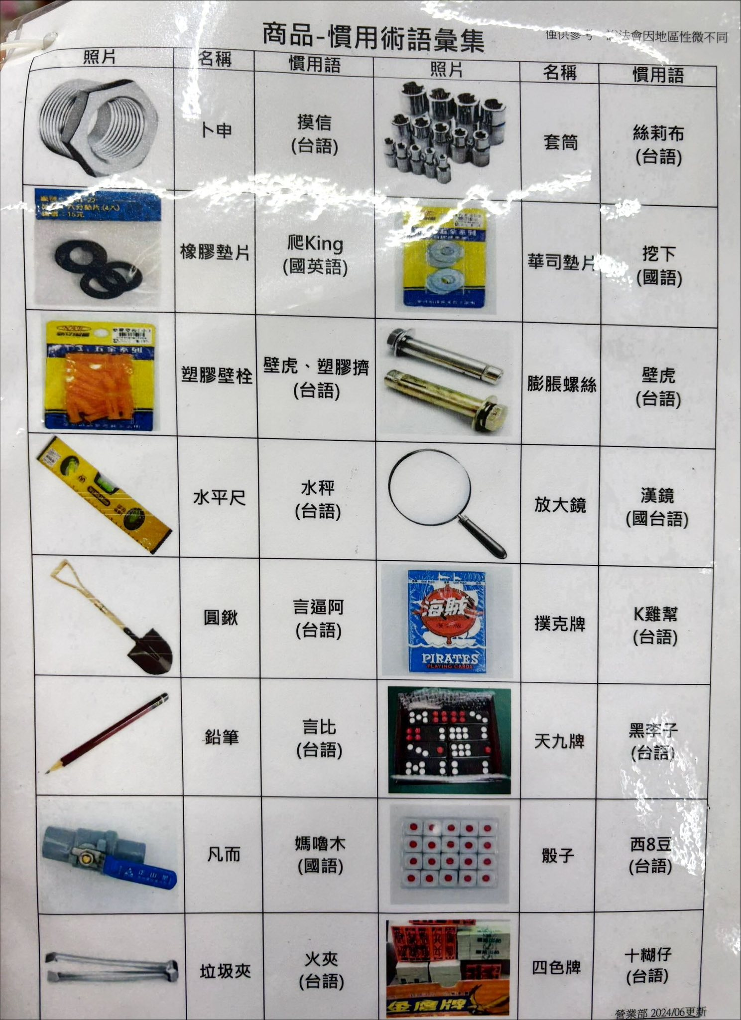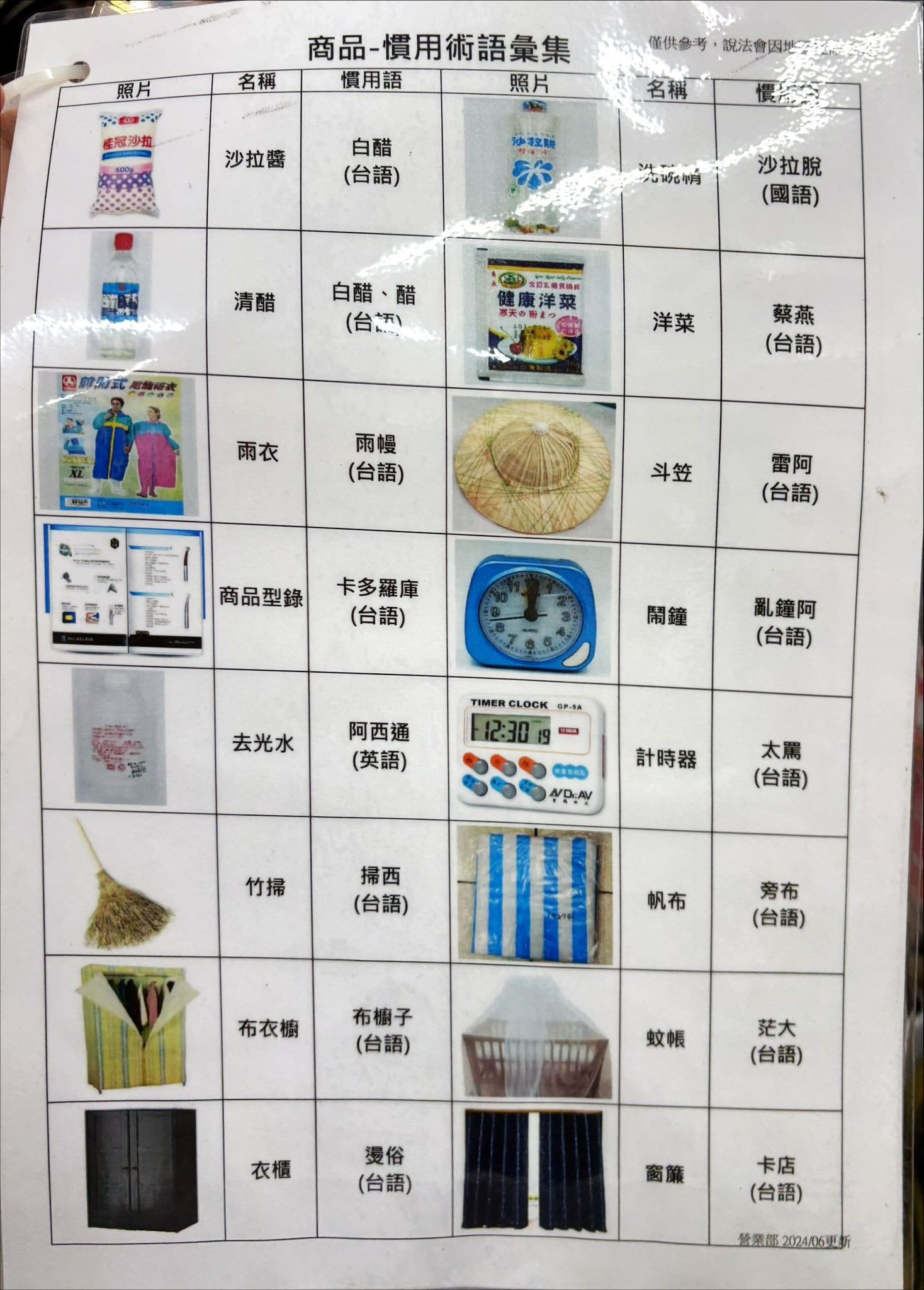 艋舺的小北百貨提供的台語、華語「慣用術語彙集」
