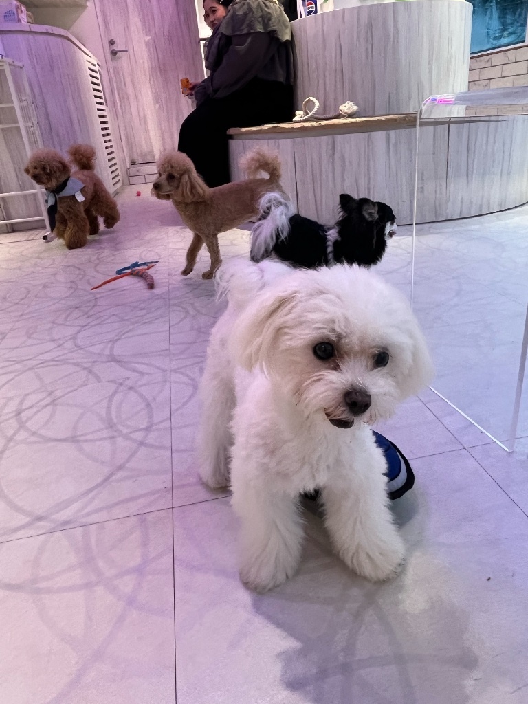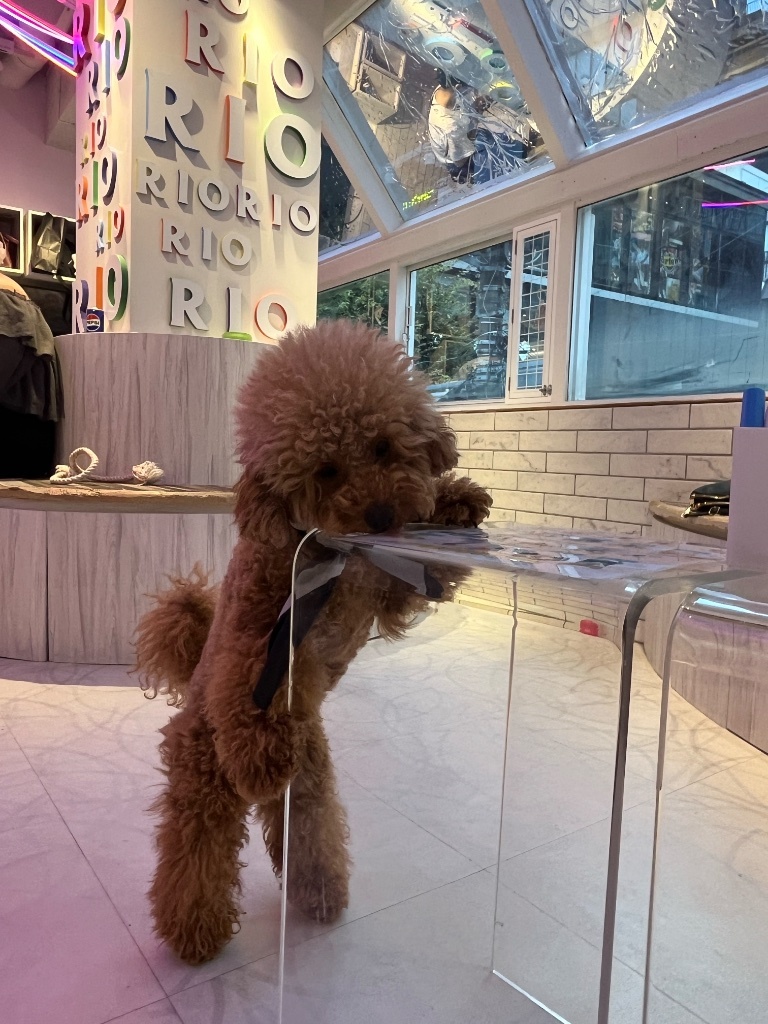 店員說他也非常喜歡那隻狗狗 本來要拿照片給我看 但因為其他狗在鬧事他就跑去處理了