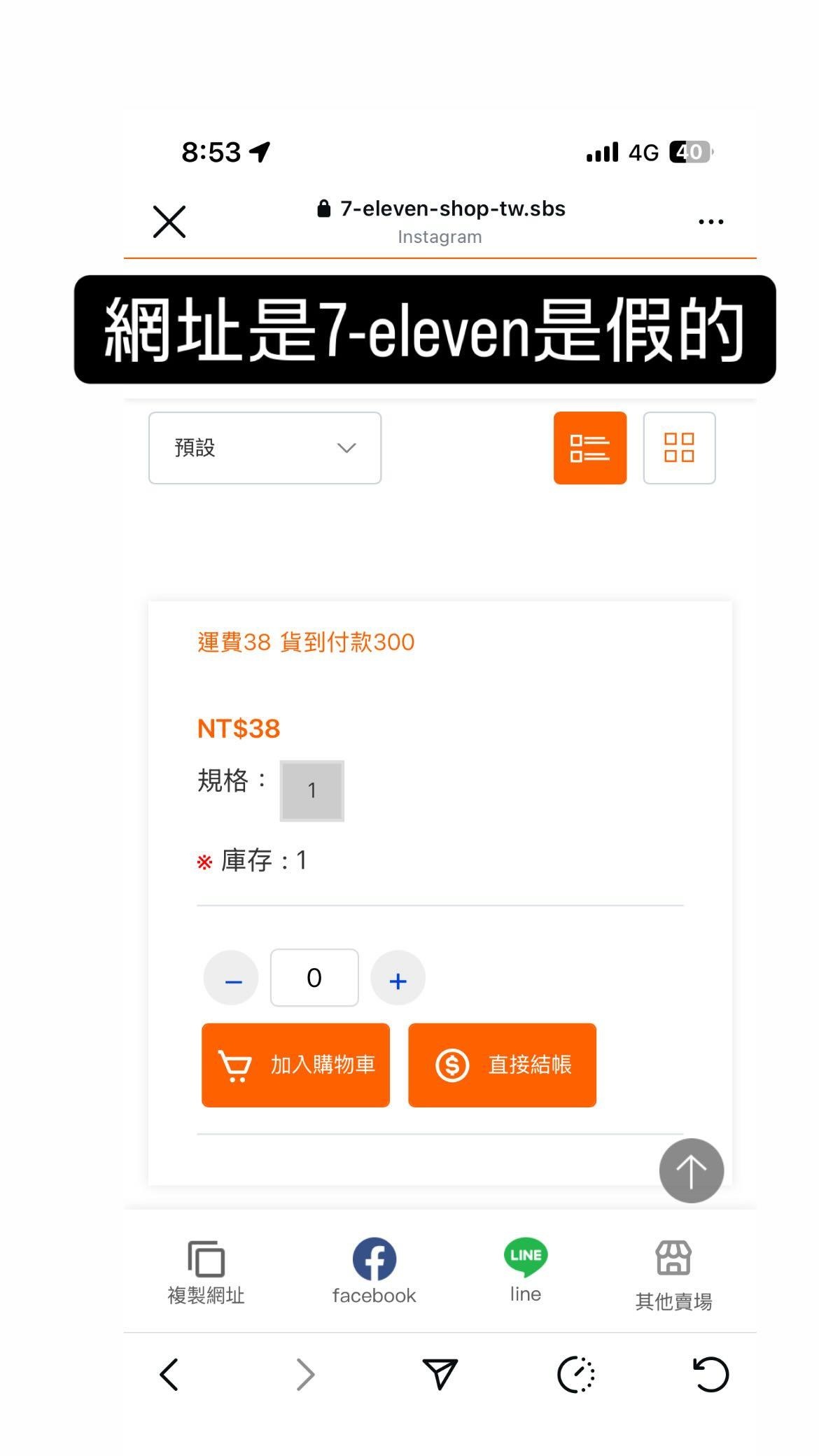 我之前故意去問詐騙說要買東西,他給我網址是這樣,