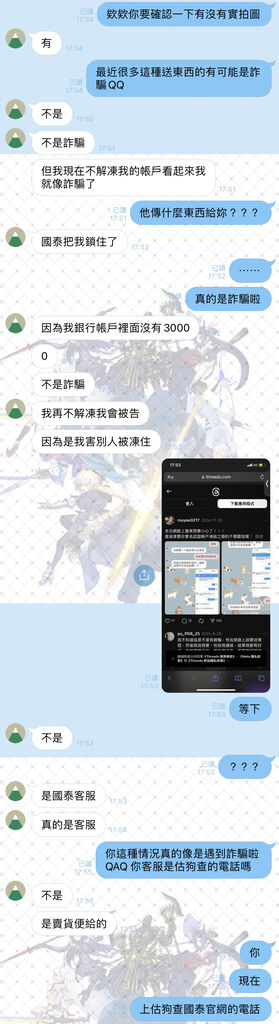 朋友那邊有打正確的客服電話也清楚是遇到詐騙了><因為她沒有買賣周邊/參加交易社團等沒看過這種的詐騙(她的賣貨便是當初學校上課要買二手書時創的)
