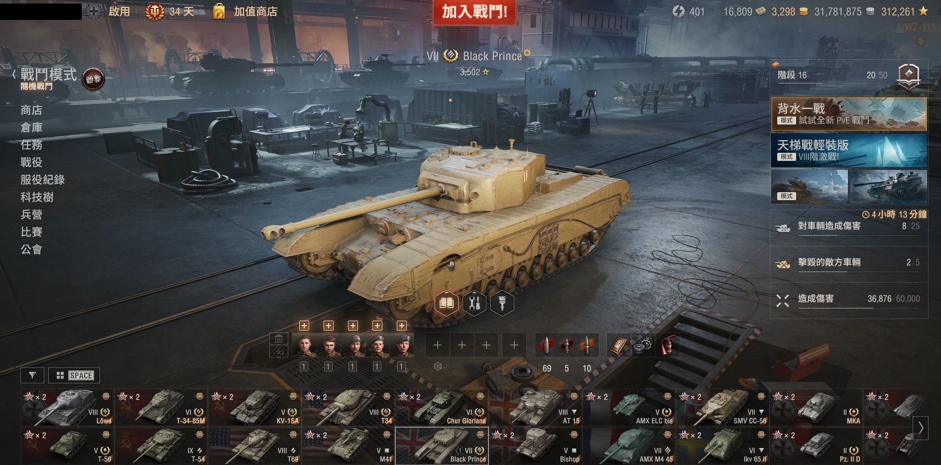 車體等校裝甲從黑王子的180一口氣跳上了280