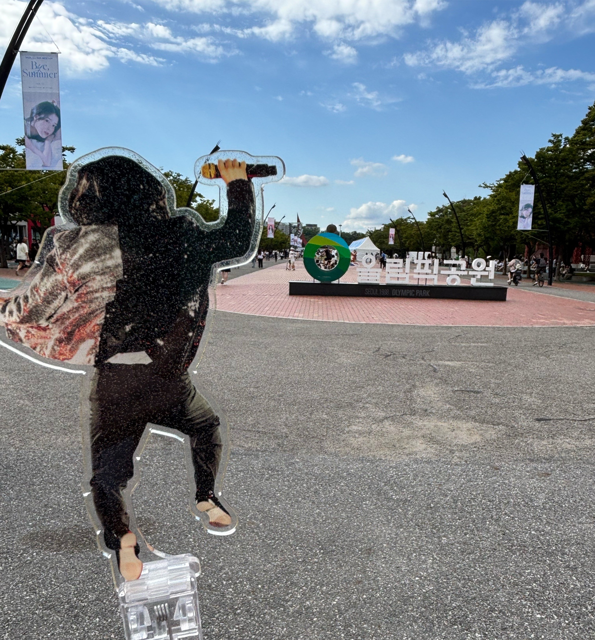 買完之後去大門口拍完照,就不去排背板,找地方休息等入場。是說韓國人對肖像權非常介意,所以人很多的地方拍的照片就不太能上傳,但明星的肖像權倒是可以隨意得被加工啊