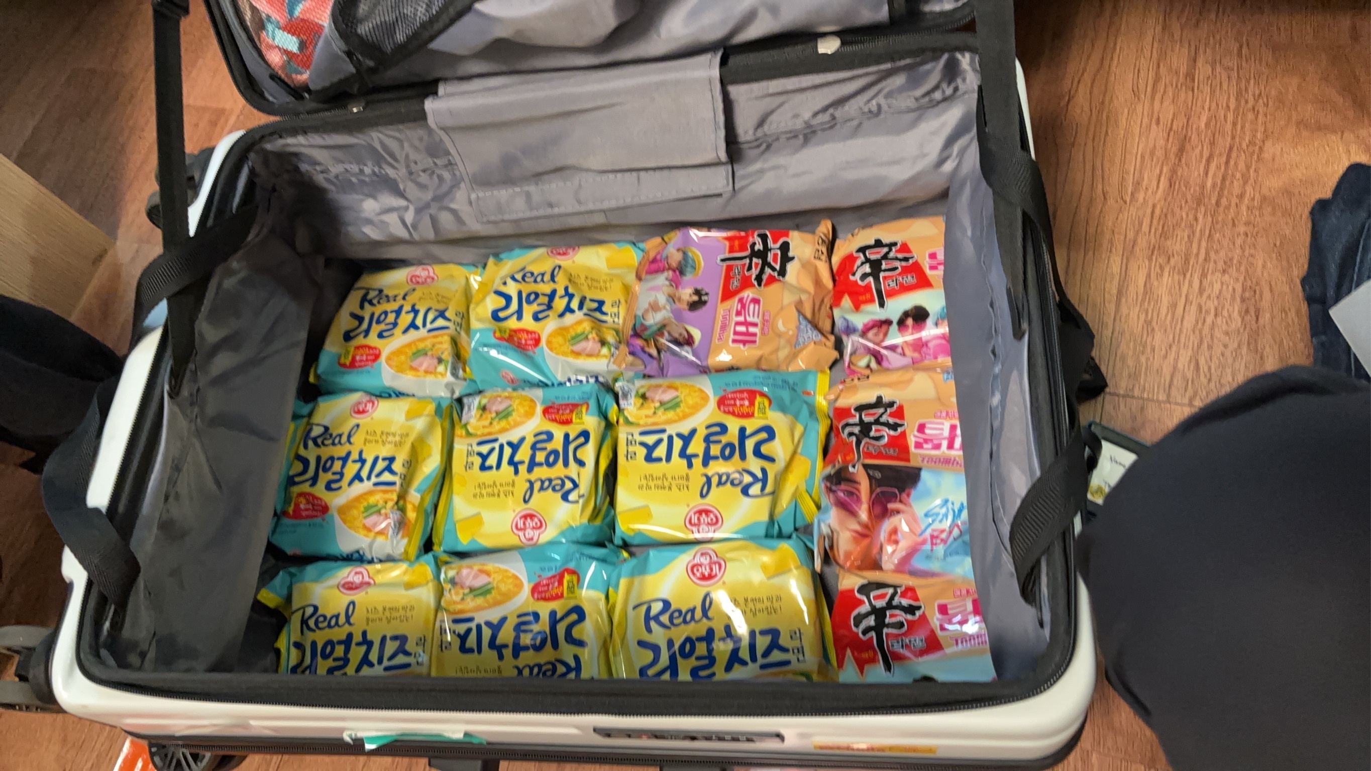 行李箱已經被裝滿了而且體力炸裂,都是樓梯害的