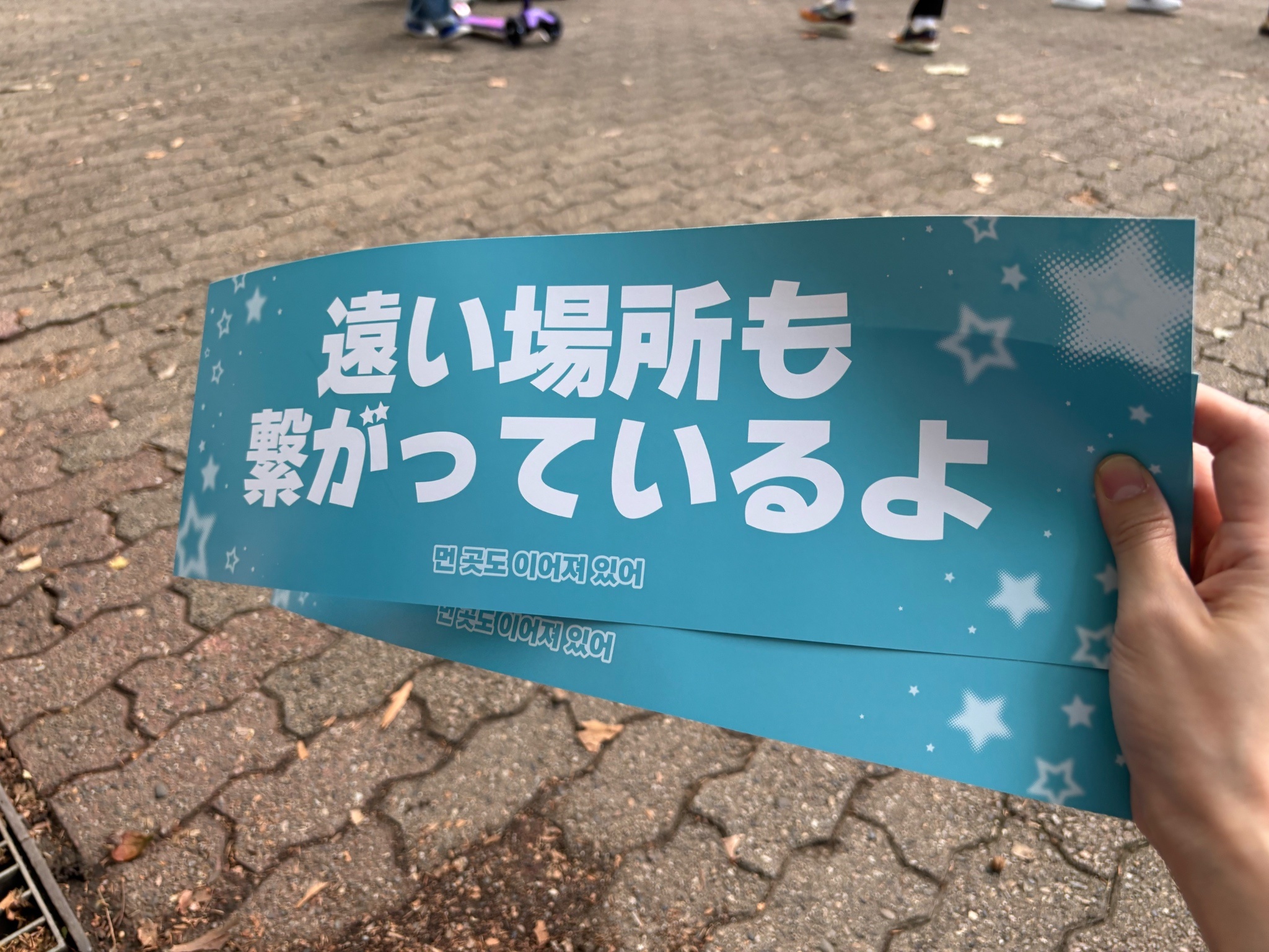 然後待機的地方偶爾會突然出現隊伍,仔細看排頭,發現是有人在發送自製應援物wwww太可愛了吧wwww