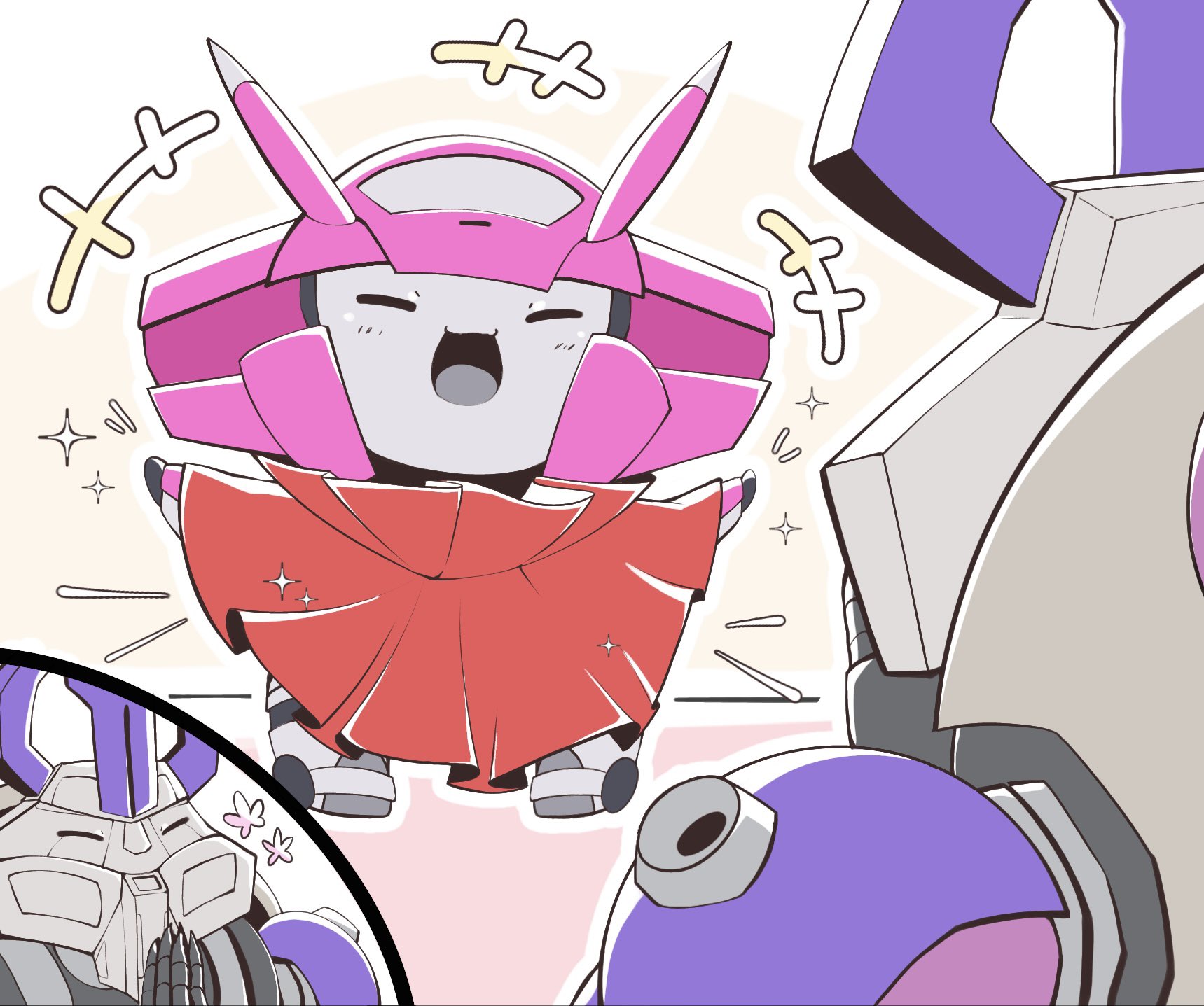 有點想看不是飛機的星星,但又覺得星星不會飛就少了點什麼,就像能量宇宙的咩嘎一回來就馬上把星星從坦克履帶拔出來變回飛機,顯然星星90%的價值都存在那對翅膀跟推進器上(?所以...接下來到底會不會真有跨界作品呢??(思