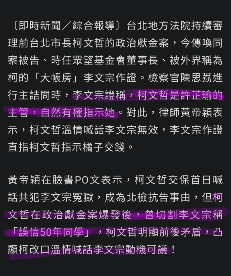 柯文哲和許芷瑜是「一組」? 黃帝穎:證實指示橘子交錢 - 政治 - 自由時報電子報