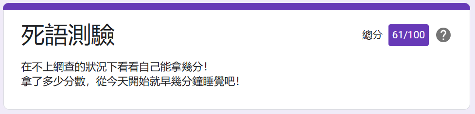 : 大您明明超年輕怎麼分數能如此高!!! 是專業的語言考古學家嗎好強!!!!!!!