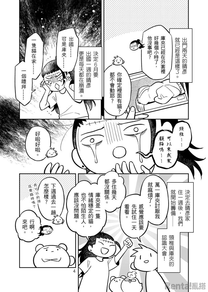 朋友晴彥即將出國一週,他家的寶貝貓貓─庫夾沒人照顧,於是我就去晴彥家住一週跟貓玩,原以為是人貓各處一室的快樂七日,沒想到庫夾在晴彥出門後直接翻臉!!