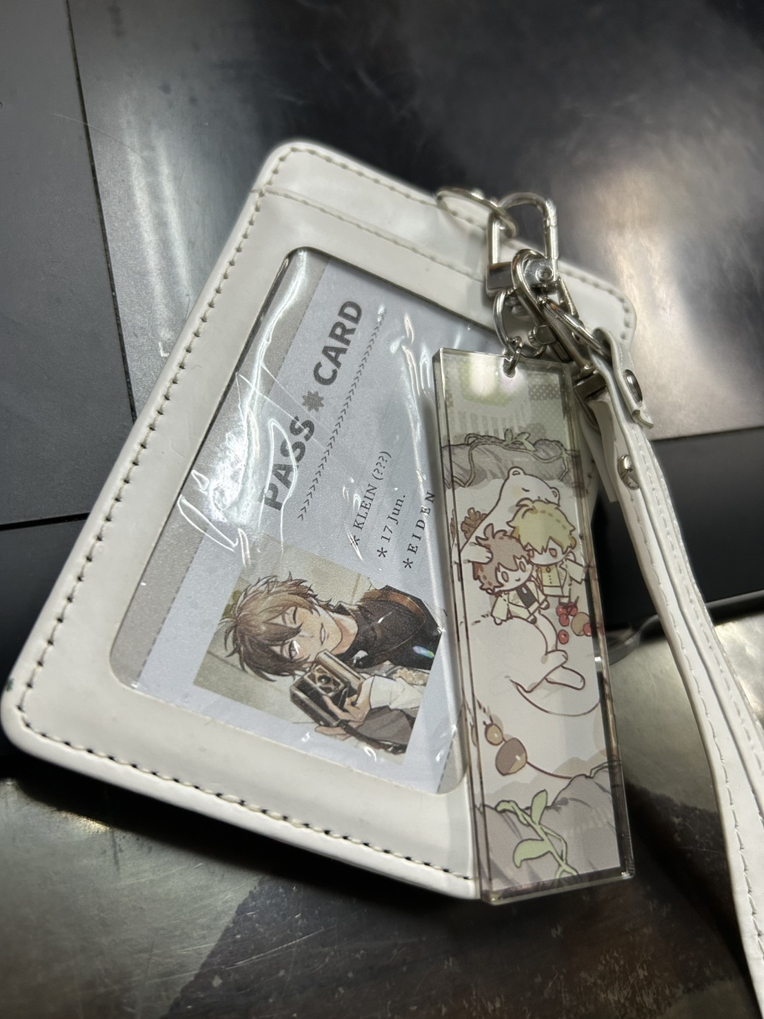 沒有阿我平常完全看不到他,完全被包覆在伊得的證件套中,只有偶爾才哦對齁中間的那張卡是莫內的草